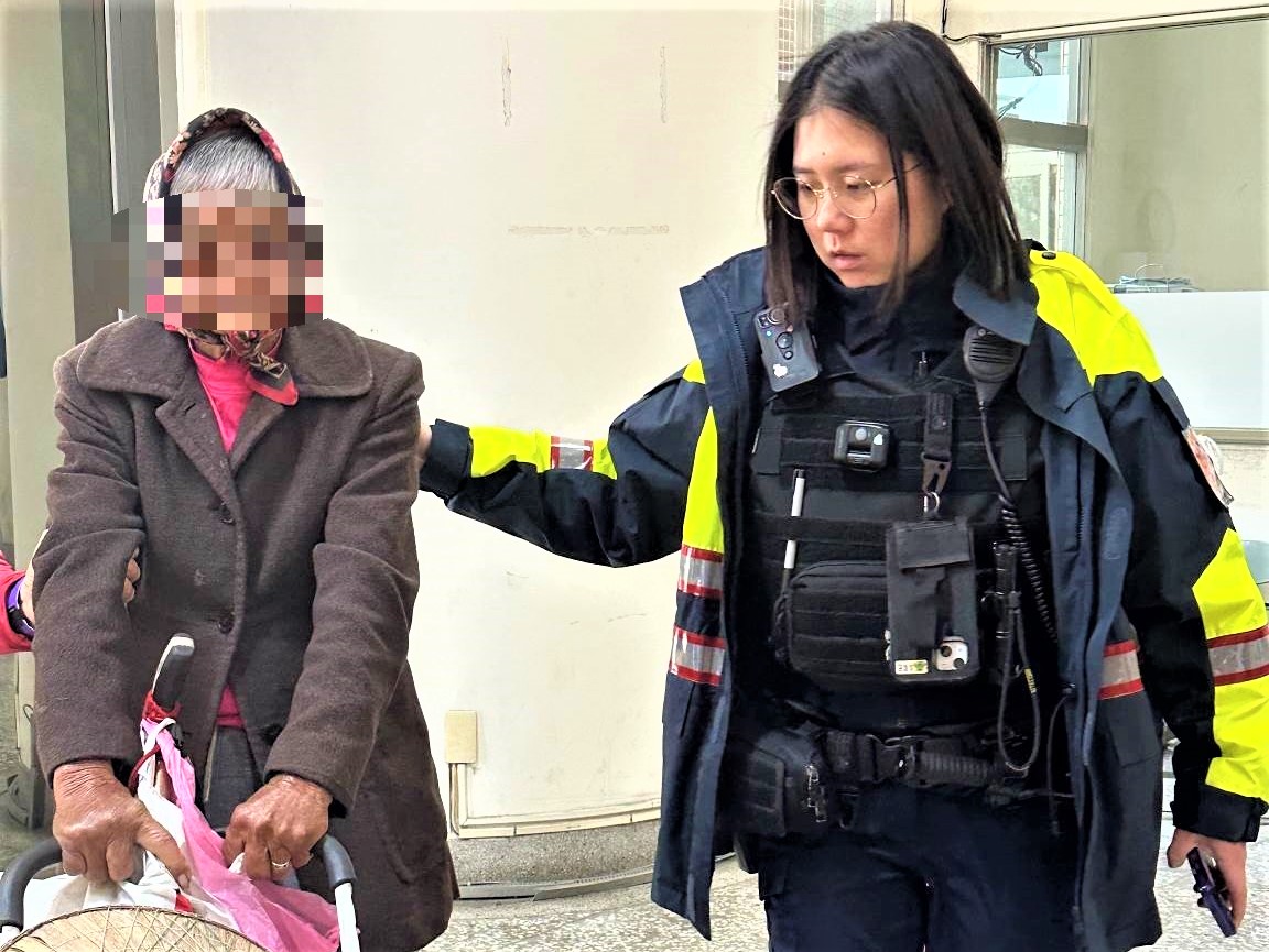經到場了解得知85歲黃鄭老婦年事已高,本身患有輕微失智現象,當天推著小推車步行外出散步,越走越遠不慎迷途,因失智症發作突然忘記回家之路,所以在該處徘徊好久不知如何是好,所幸有熱心路過民眾發現關心協助報案。