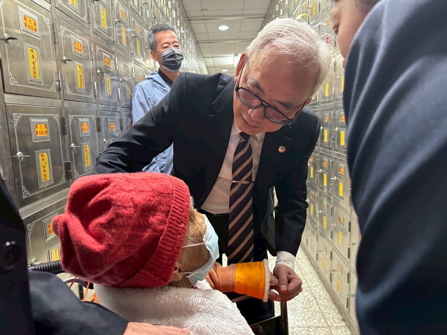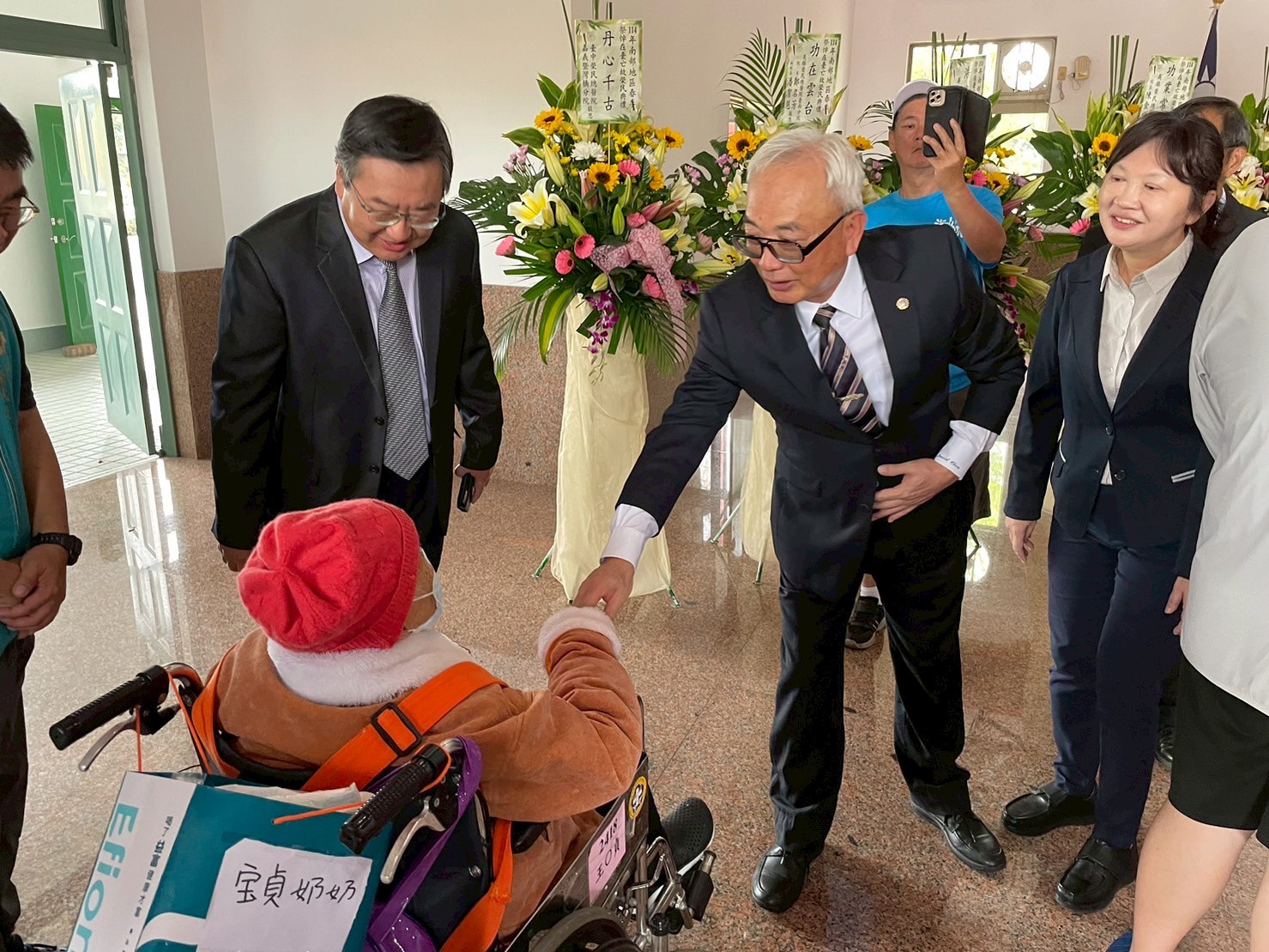 黃姓榮民前輩生前與王奶奶夫妻感情甚篤,但膝下無子女,其於民國99年亡故後,嘉義榮服處輔導員王進東及社區服務組長劉明義,一直把王奶奶當自家人照顧,112年王奶奶入住高雄榮家,王、劉兩人也經常主動探視關懷王奶奶生活狀況。祭祀後,王奶奶又回到嘉義老家巡禮,場面溫馨動容,但也令人鼻酸不捨;陳副主委表示,對於高雄榮家及嘉義榮服處等人陪同安寧王奶奶圓夢,給予相當大的肯定,並致贈伴手禮祝福王奶奶身體健康、平安,也請高雄榮家團隊持續給予關懷及照顧。