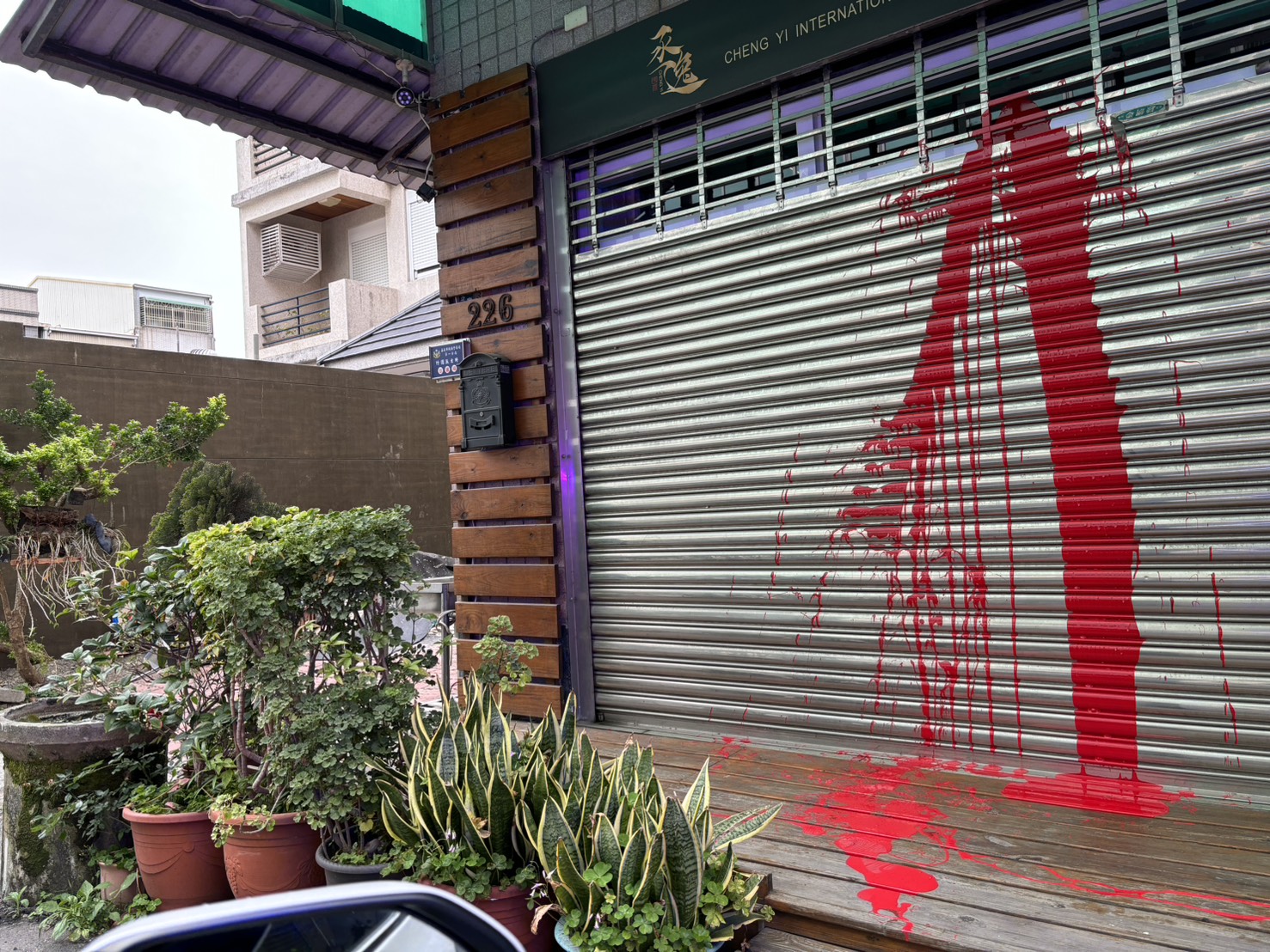 〔記者郭政隆/嘉義市報導〕嘉義網紅「鳳梨」吳泓逸位於嘉義市的公司,於4/1日上午鐵捲門遭人潑紅漆,潑漆的男子並還拍影片上社群網路;嘉義市政府警察局第一分局於獲知後,立即啟動偵查,並於當日下午將涉嫌潑漆的陳姓男子逮捕到案,遭逮的陳男表示,因不滿「鳳梨」在網路上發表的言論才潑漆洩忿,警方依毀損罪嫌將陳姓男子移送法辦。