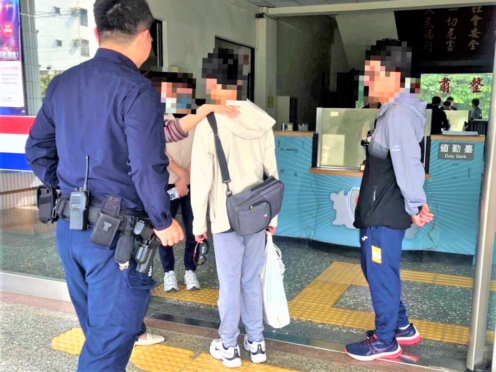 警方釐清事情始末後,先行安撫心急的父母,耐心詢問男孩外出時的穿著等特徵,依規定先行受理失蹤人口案,完成後,警方一方面設法透過學校導師,向男孩較為要好的同學詢問,是否知悉男孩去向;另一方面,立即調閱學校周邊路口監視器,逐步追蹤男孩外出的軌跡方向,終於在14時許,警方發現有1名男孩騎著腳踏車,停在派出所對面的統一超商旁,並徒步走進超商內,而衣著特徵皆與男孩極為相似,警方立即馬不停蹄地趕抵現場。
