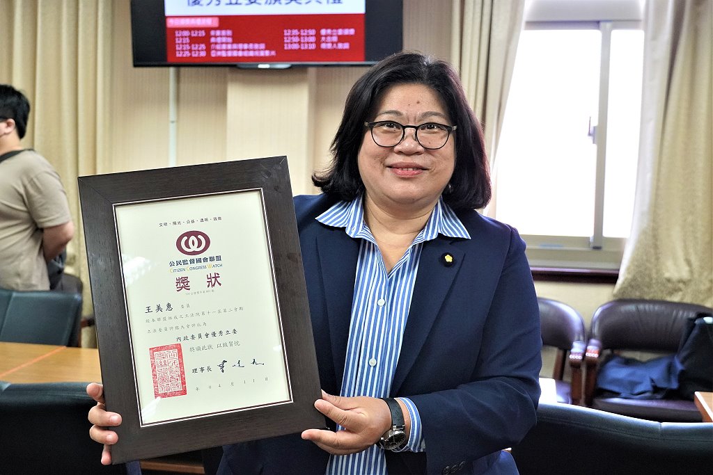 〔記者郭政隆/嘉義市報導〕雖位列國會委員,服務態度卻比基層里長還勤懇的立法委員王美惠,問政表現再度獲得肯定;公督盟於4/11日辦理第11屆第2會期優秀立委頒獎典禮,頒授王美惠「優秀立委」,這是王美惠第6次獲得此一肯定,也是本屆連續2個會期獲選的立委之一,問政表現備受肯定。