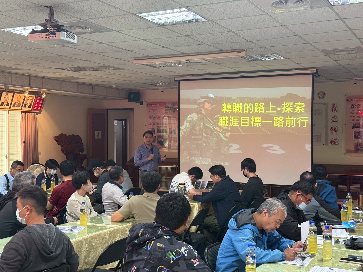 講座邀請到就業情報資訊公司顧問黃敏忠,以其個人亦為榮民角度來探索職涯目標,而說明會更安排許多與參加人員有關的學業訓及相關福利資源宣導,首先由王李社會福利基金會、原住民族委員會雲嘉南區與雲嘉南分署朴子就業中心張春美主任作資源分享服務及宣導,另外邀請到吳鳳科技大學與南華大學針對退除役官兵作就學資訊的推廣;緊接著邀請沐沐餐飲馮執行長春嚴及英維酵素股份有限公司黃董事長崎榮兩位創業有成之退除役官兵,分享個人退役後創業的辛苦點滴及努力過程,鼓勵大家憑藉著軍人堅毅的精神,創造人生的價值,在選擇道路的時刻秉持初心,扮演好當下的職務角色,逐步踏實追夢,朝自己目標前進,才能有更美好的明天。