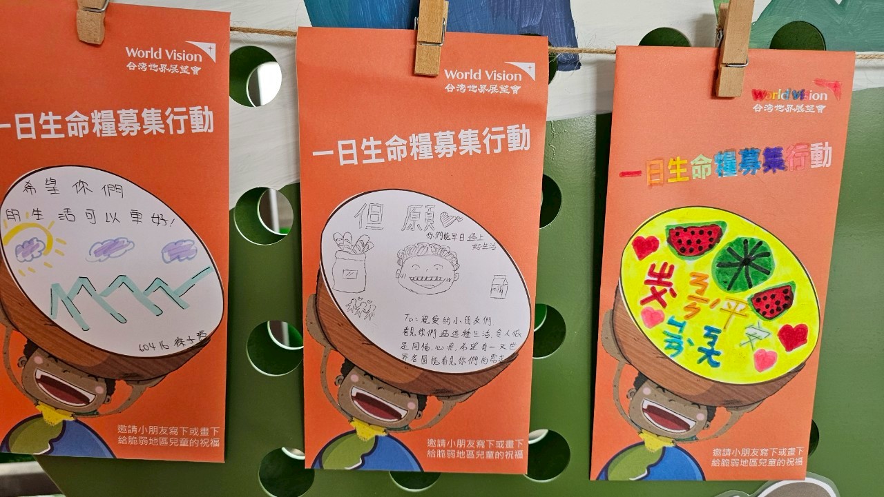 民族國小校長陳文瑜表示,教育的核心在於培育具備願景與行動力的孩子。透過生命教育、闖關體驗與愛心任務,學生不僅習得知識,更學會同理心與承擔社會責任,進而讓每位師生與家長都成為推動世界改變的行動者。在「一日生命糧募集行動」中,學生們透過繪製「祝福餐盤」,表達對飢餓兒童的關懷,並寫下溫暖祝福,如:「希望你們可以飽餐一頓」、「希望你們健健康康」、「雖然我們不認識,但我願意幫助你們」等,以最真摯的心意,為遠方的孩子送上鼓勵與希望。