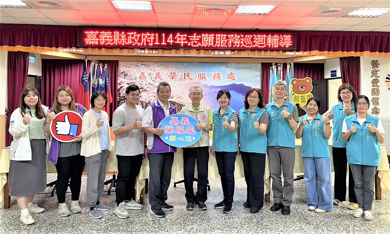 嘉義縣政府為協助轄內及各目的主管機關志願服務工作事項提升團隊組織功能、教育訓練、服務績效等知能,辦理一系列團體輔導及個別輔導活動,本次至嘉義榮服處瞭解年度規劃志願服務計畫內容、年度服務成效以及各項創新服務方案,透過雙方深入討論與經驗分享,與縣府團隊雙向互動,共創完善的志願服務機制。