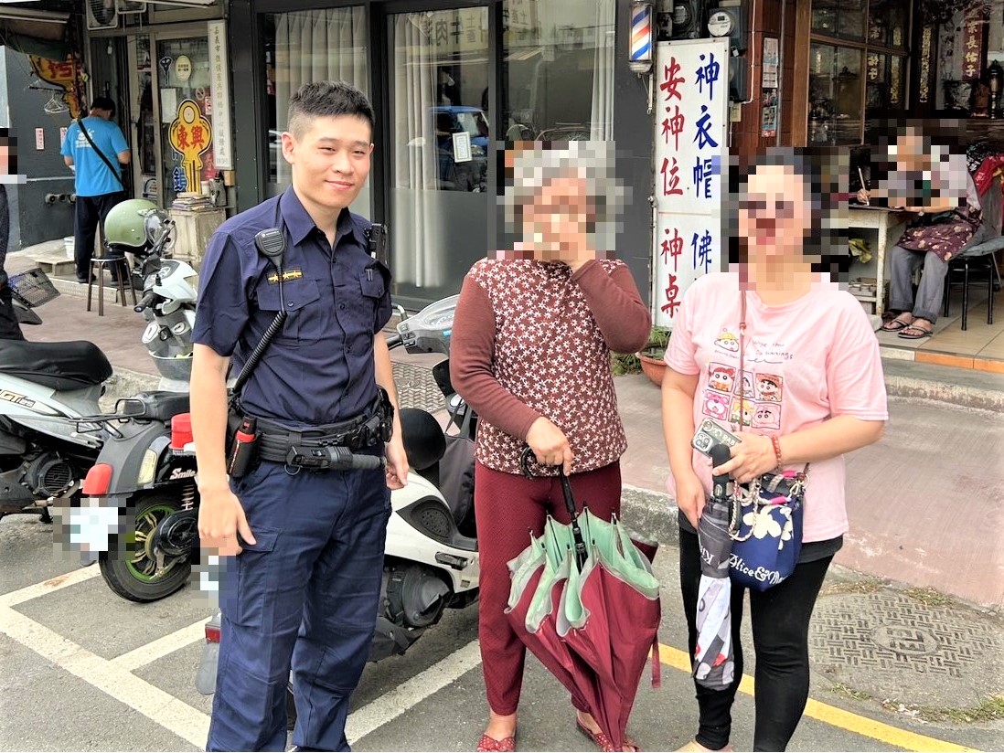 員警到場了解狀況後,透過監視器及李婦所提供的穿著特徵,騎車沿路尋找約莫40分鐘,終於在距離2公里遠的民生北路口找到母親,立刻通知李婦至現場與母親團聚,李婦對於員警的暖心舉動,感到十分感謝,頻頻向警方表達感謝之意;警方也不忘提醒李婦,要多加注意家中長者的狀況,避免類似的情形再度發生,如有任何問題都可以請求派出所協助。