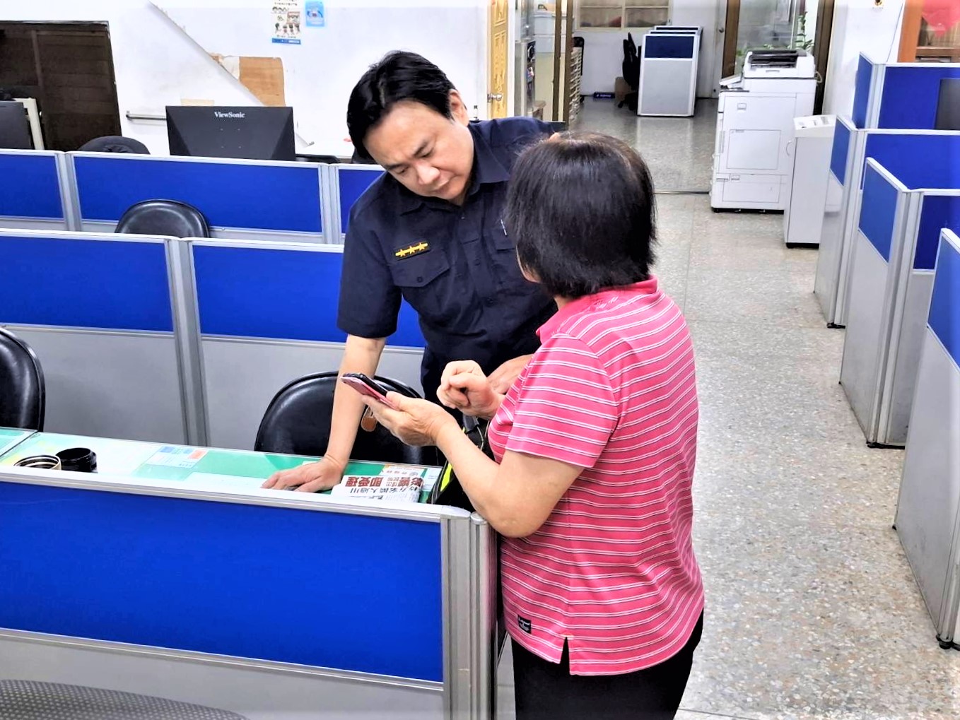 〔記者呂昭德/嘉義市報導〕嘉義市政府警察局第一分局北興派出所巡佐張嘉佑、警員陳明昌日前擔服值班待命勤務時,有一名老婦神情慌張來到派出所求助,言詞中充滿焦慮疑惑,經關懷詢問得知,70歲蔡姓婦人接獲一名自稱友人通訊軟體LINE來電,因發生變故急需用要借錢,蔡婦原本不疑有他準備轉帳匯款,但心中存疑便回撥友人電話後,發現友人的通訊軟體LINE已遭盜用,陳員了解事況原由,積極耐心宣導蔡婦此為詐騙集團慣用手法切勿上當。