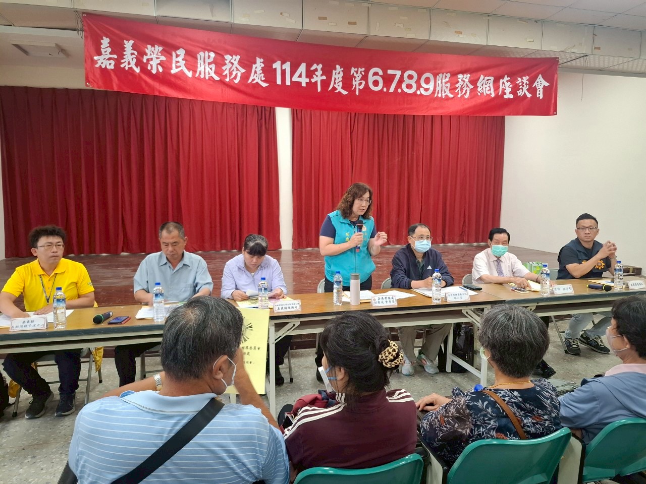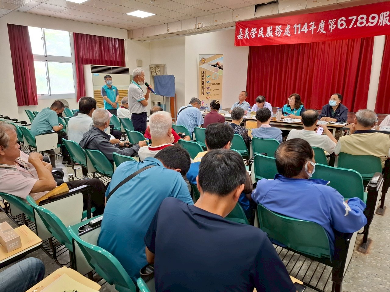〔記者陳允得/嘉義縣報導〕為傾聽退除役官兵心聲,了解渠等生活及服務情形,嘉義榮民服務處至朴子市老人文康活動中心,與退除役官兵相互交流,宣導輔導會重要服務措施,也聽取各方建言及交換意見,期待能讓服務照顧更為完善;本次服務網座談會由副處長曾秀琴主持並率各業務承辦人員參與,活動也邀請嘉義縣警察局、內政部移民署南區事務大隊嘉義縣服務站、嘉義縣衛生局、臺中榮總嘉義分院及白河榮家等單位至現場。