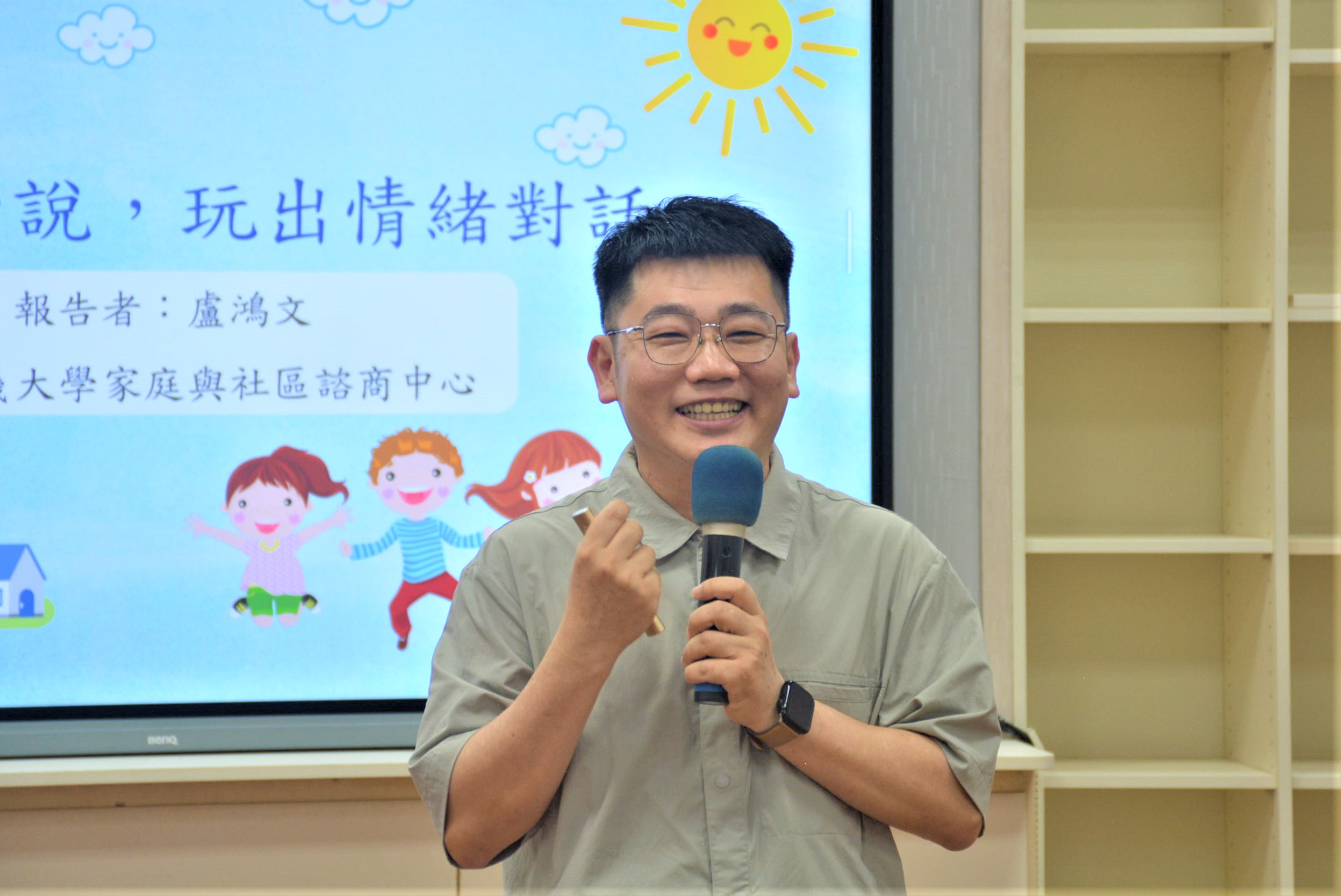 本次啟動儀式由嘉義市政府衛生局張育彰科長、嘉大家庭與社區諮商中心盧鴻文主任與嘉義市政府教育處學輔校安科林淑華科長共同出席,三方攜手呼籲社會正視青少年心理健康議題;計畫主持人盧鴻文主任說明指出,「TEENS心說」計畫以青少年熟悉的桌遊、牌卡、藝術等媒材為載體,設計適合國小高年級至高中職學生參與的互動活動,透過「玩中覺察、說中療癒」,引導青少年學習情緒表達與調節。同時也為第一線教育人員規劃專業工作坊,強化其在表達、溝通與同理方面的實務能力,協助其更有力地陪伴學生。