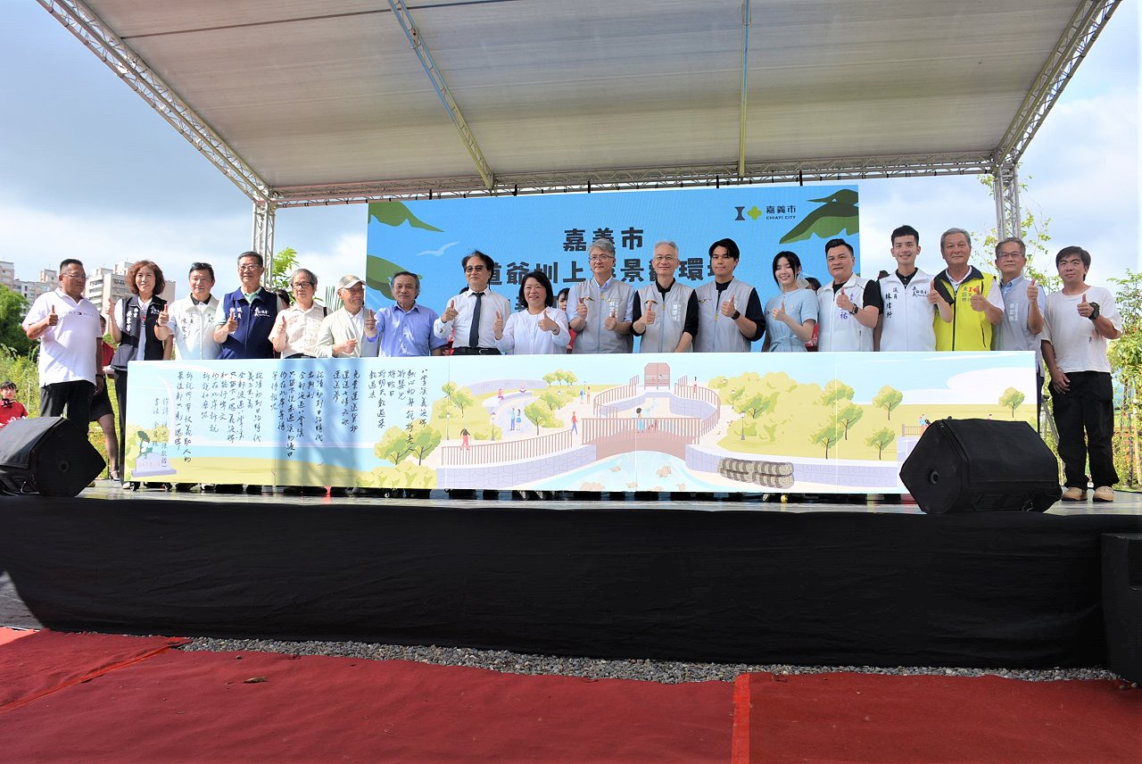 〔記者郭政隆/嘉義市報導〕嘉義市政府投入約3,560萬元、歷經兩階段、歷時三年的整體改造後,擁有三百年歷史的嘉義道爺圳煥然一新,市府並於5/19日於現地舉辦「嘉義市道爺圳上游景觀環境改善工程」竣工典禮;道爺圳再造結合生態工法、低碳建材與綠化植栽,並融入文化藝術打造「道將圳文學步道」,成為融合低碳永續、文化藝術的水岸綠廊道,也為建城320+1年的嘉義市再添文化地景新亮點。