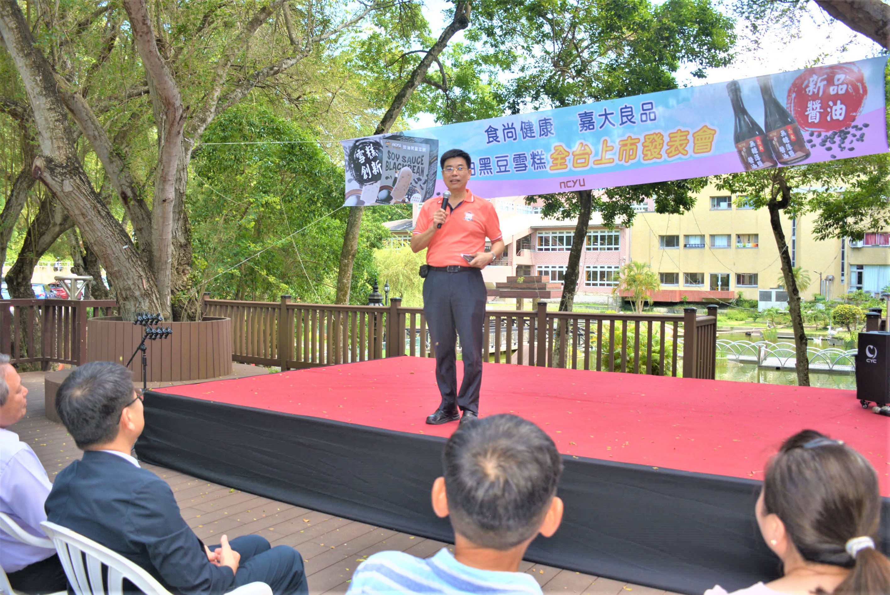 〔記者邱嘉琪、郭政隆/嘉義市報導〕盛夏酷暑,來枝雪糕冰品,直會叫人舒暢透心涼!嘉義大學員生消費合作社5/22日該校於蘭潭校區舉辦「嘉大良品•食尚健康•新品上市發表會」,正式推出全臺首創的大學LOGO聯名冰品「Mr.酷x嘉義大學雪糕」,最令人驚奇亮眼的是「醬油黑豆雪糕」,這款雪糕鹹甜交織、風味獨具,顛覆傳統冰品印象。