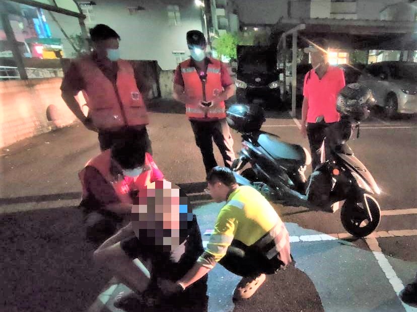 經救護人員初步評估,譚男僅身體虛弱有輕微擦挫傷,無嚴重外傷或頭部創傷,意識清楚生命徵象穩定,雖然救護人員建議送醫觀察,惟譚男表示不願就醫,返家休息即可,員警尊重意願後,經查詢系統成功聯繫到譚男家屬,說明當前狀況並請其儘速前來接應。