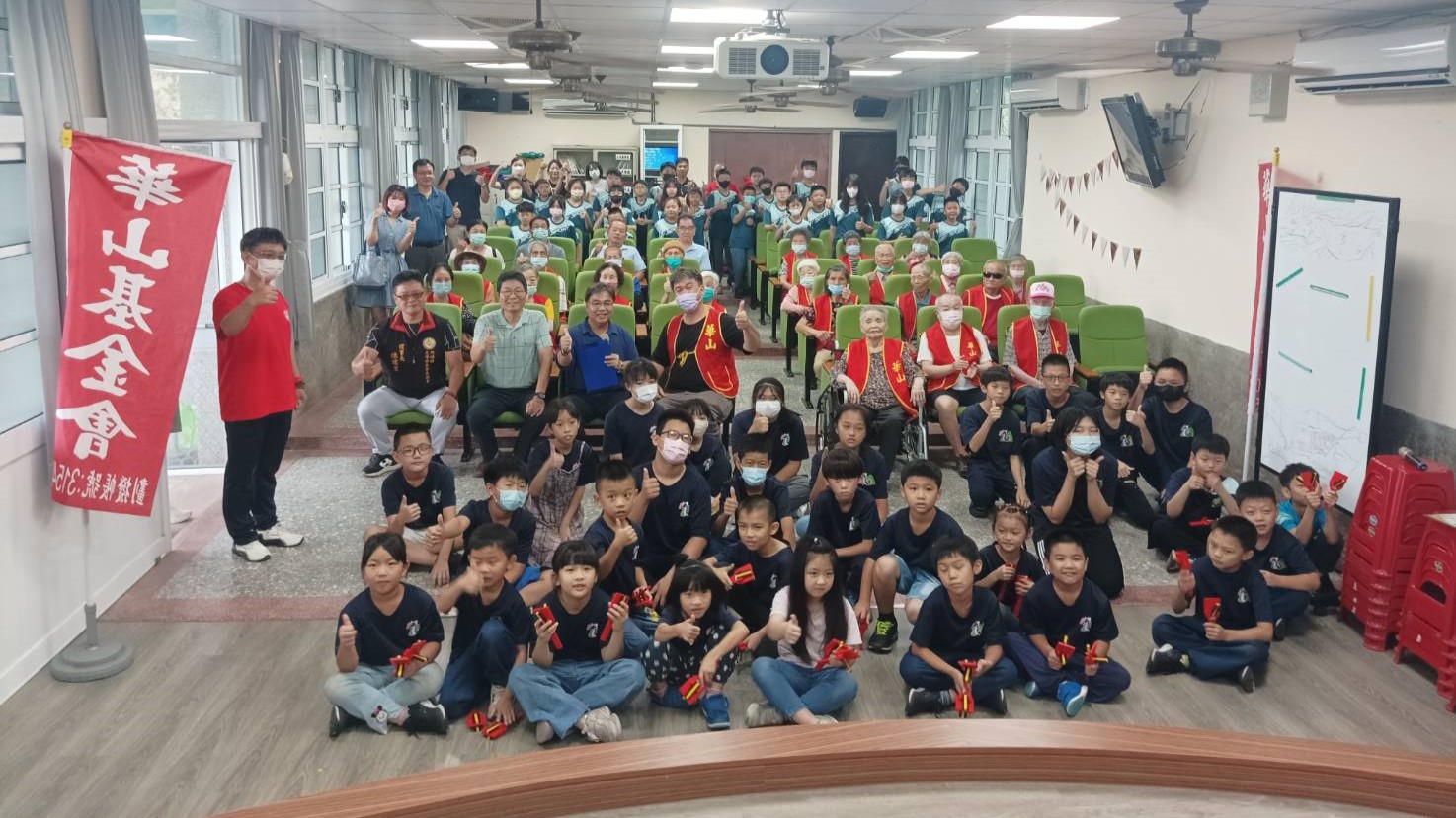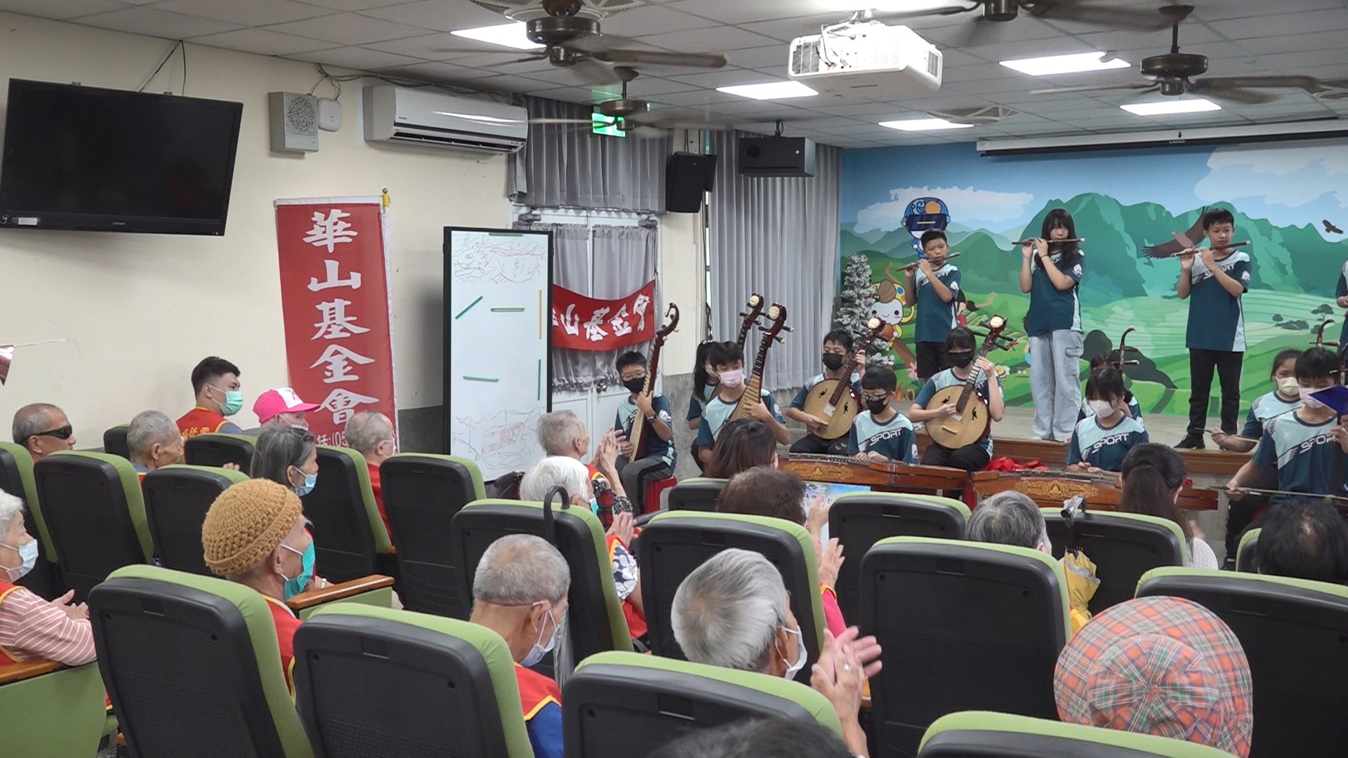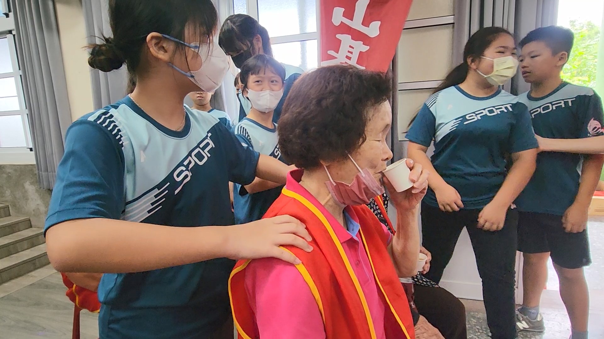 過程中另安排兩校孩子的服務學習,幫現場所有阿公阿嬤們搥背按摩外,也以茶席奉茶接待參與長者,帶來了兒孫圍繞的溫馨與夏日悠閒時光,100歲人瑞許阿嬤很高興能受邀參與活動,平日少有機會走出家門的她,對孩子們的表演感到新奇有趣頻頻說讚、獨居的李阿嬤也說看到孩子們的笑容心都開了,對華山的服務充滿感激。