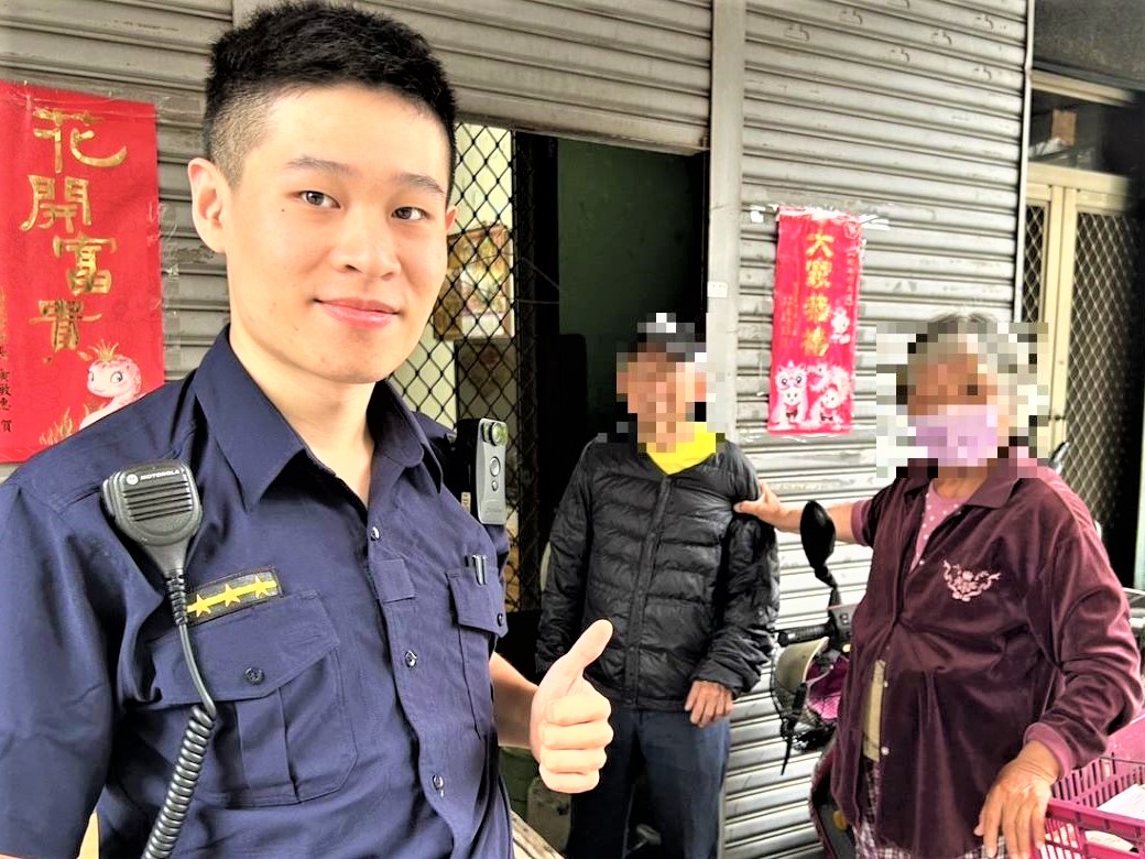 〔記者呂明鴻/嘉義市報導〕嘉義市政府警察局第二分局南門派出所警員楊棠裕日前擔服備勤勤務時,接獲勤務指揮中心通報,稱有1名迷途老翁在垂楊路段徘徊,需要警方協助。經員警趕赴現場查看,見1名老翁眼神無助地在路上徘徊,立即上前關懷並聯繫其家屬,順利協助老翁返家。