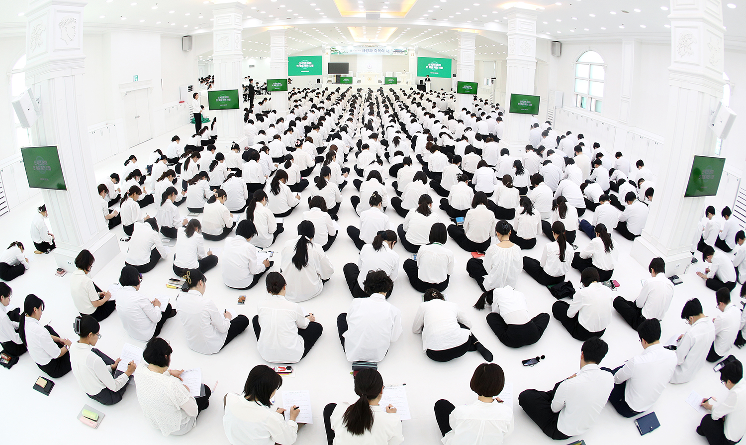 生於基督教家庭的裵世娜(音譯,57歲女性)表示:「當我完全理解並背誦啟示錄後,現在即使不翻聖經,也能傳講話語。在來到新天地耶穌教會之前,即使聽了講道,內心總是空虛,也對救恩沒有確信。但在這裡每週考試,讓我開始對自己的信仰產生醒悟。如今我能確實回答『我是聖經中所說的誰?』、『按照啟示錄被創造的實體是誰?』。」