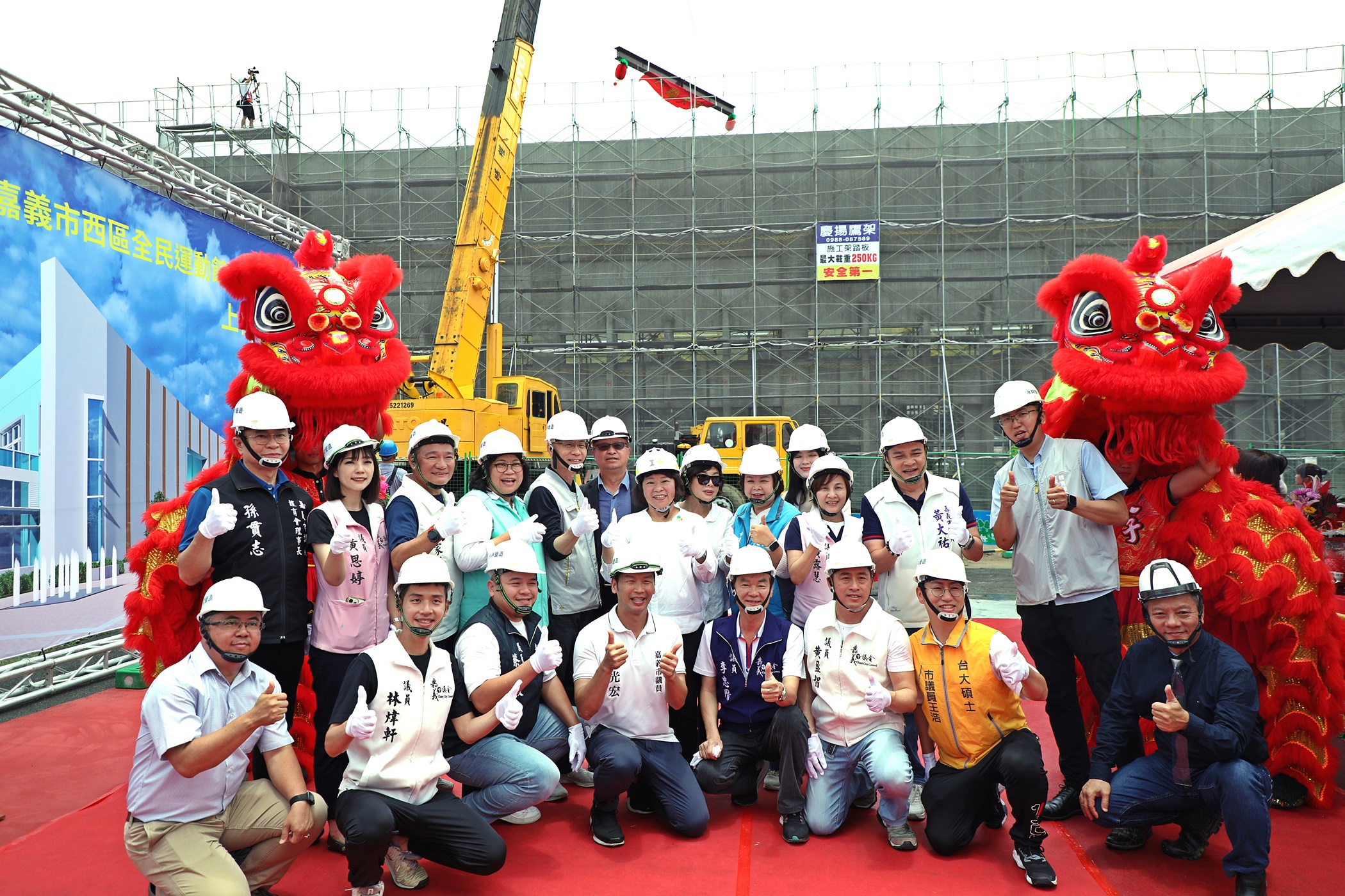 今日帶領市府團隊到場祈福籌嘉義黃敏惠市長表示,西區全民運動館所在的劉厝地區地理位置良好,鄰近社區人口密集,未來啟用後將成為市民運動休閒的全新亮點;體力就是活力,全民運動館不僅是一座建築,更是推動健康、快樂生活的重要基地,完工後能如期如質營運,吸引市民踴躍使用,發揮出體育運動的教育功能、健康功能、經濟功能以及社會功能。