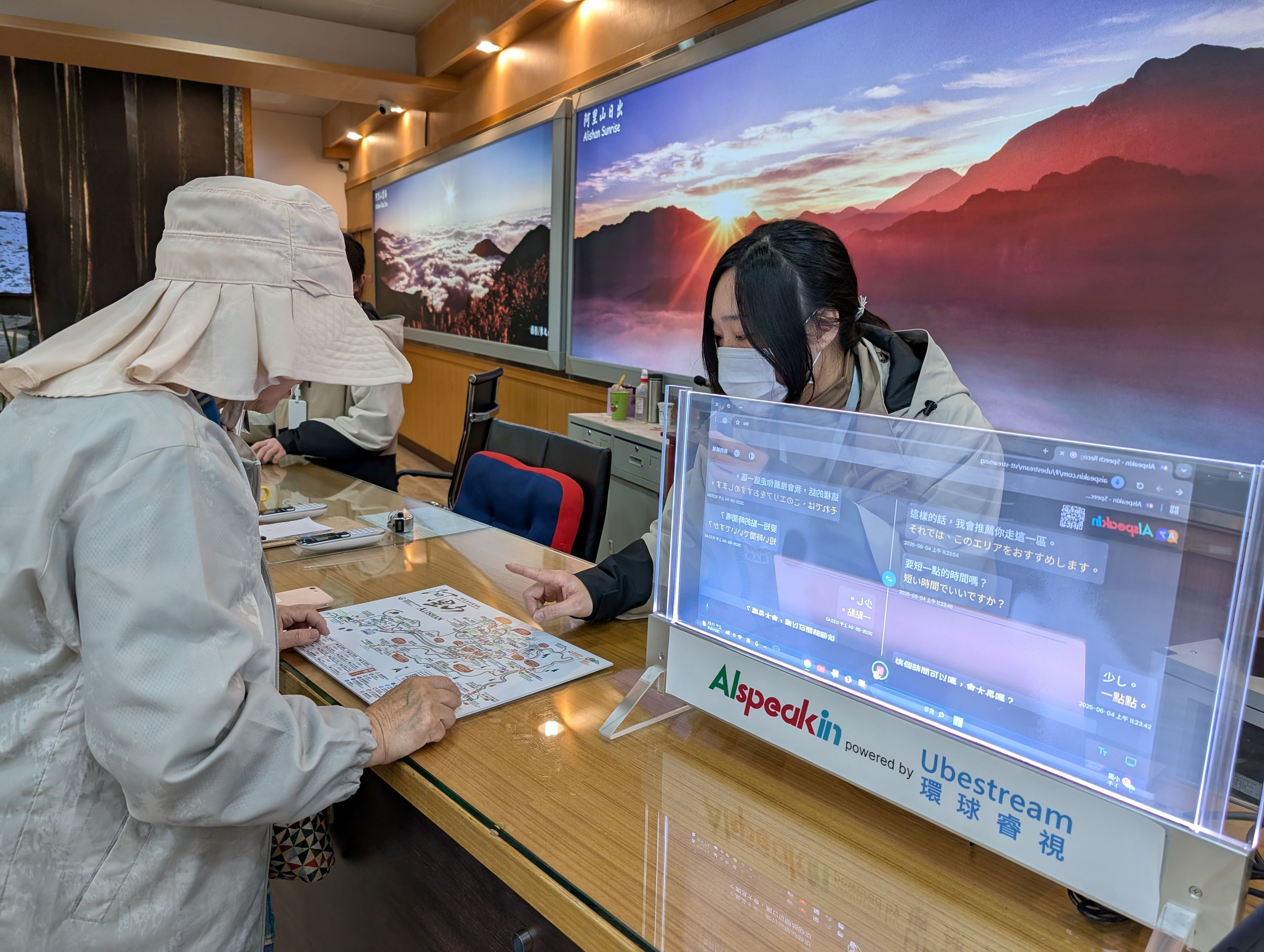 嘉義分署表示,除定點式AI智慧櫃台可增進與外籍旅客溝通外,亦備有一台手持式iPad可走動式進行AI翻譯服務,於測試過程中,不只常見的英、日、韓語系翻譯需求,更已服務使用法語、希伯來語等不同語系的遊客,顯見國際化遊客服務日趨重要,未來將透過滾動式評估,擴及園區其他有服務旅客需求之據點,期待透過AI智慧櫃台服務,展現臺灣科技軟實力,為國際旅客提供更便利、更即時、更道地的語言翻譯服務外,讓阿里山與國際沒有距離。
