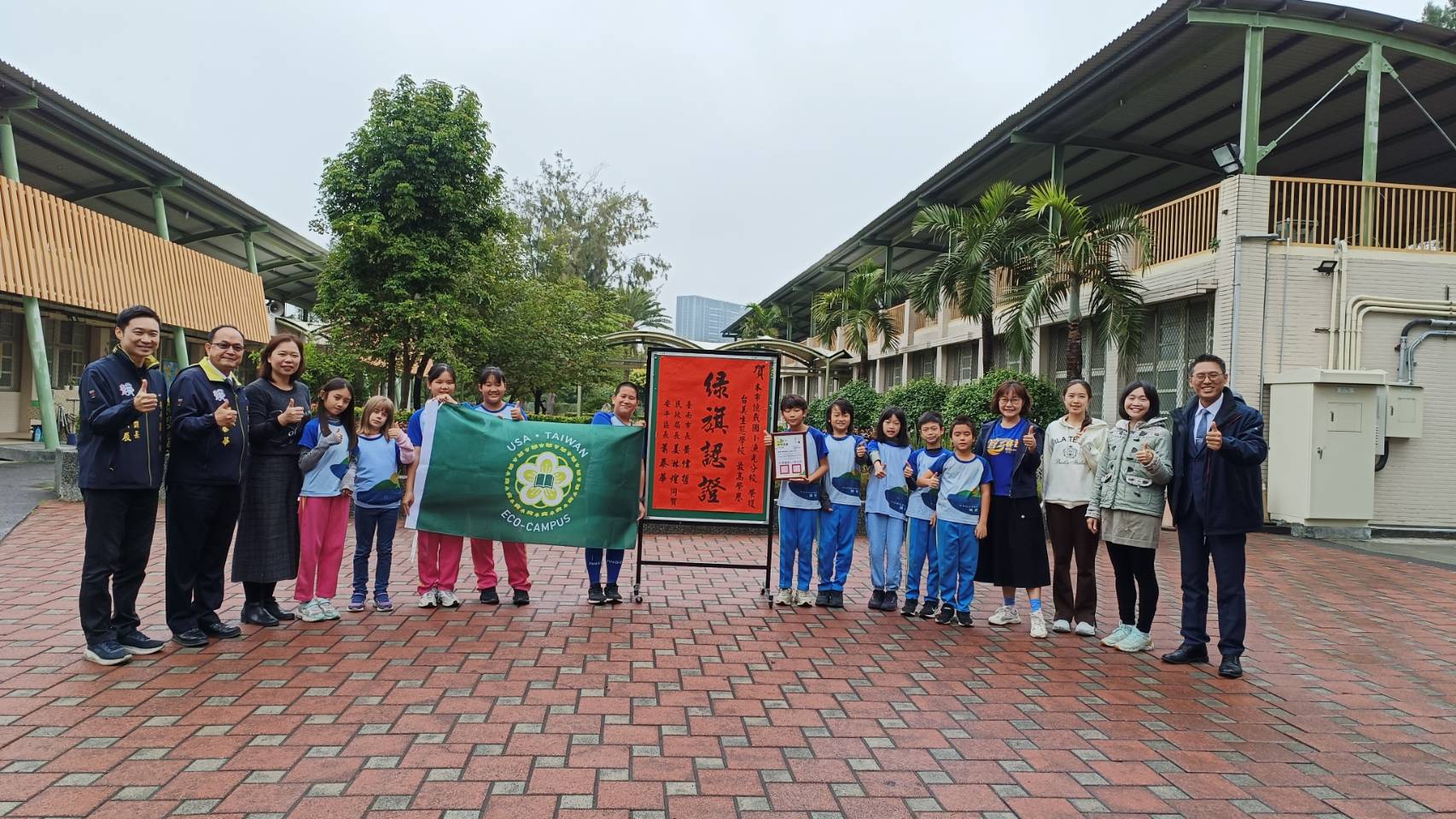 安平區蕭泰華區長致贈紅榜慶賀億載國小漁光分校及慈濟高中小學部參加113年臺美生態學校認證勇奪最高榮譽「綠旗認證」!