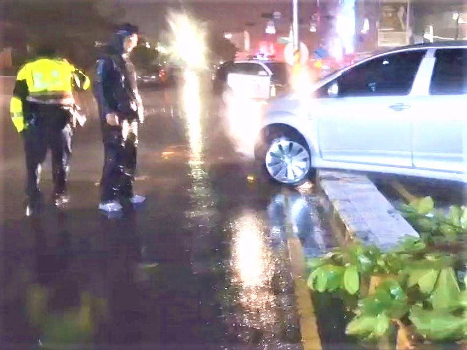 〔記者吳玉芬/嘉義市報導〕嘉義市政府警察局第二分局興安派出所警員康文曄及江季興日前擔服巡邏勤務,於當日凌晨1時許,接獲勤務指揮中心通報,有民眾在世賢路四段某巷口需要協助,因當時受到丹娜絲颱風帶來的暴雨狂風,警方不畏危險,立即趕赴現場發現黃姓男子駕車自撞道路中央的分隔島,車子卡在分隔島上動彈不得,且車上還有其他乘客。