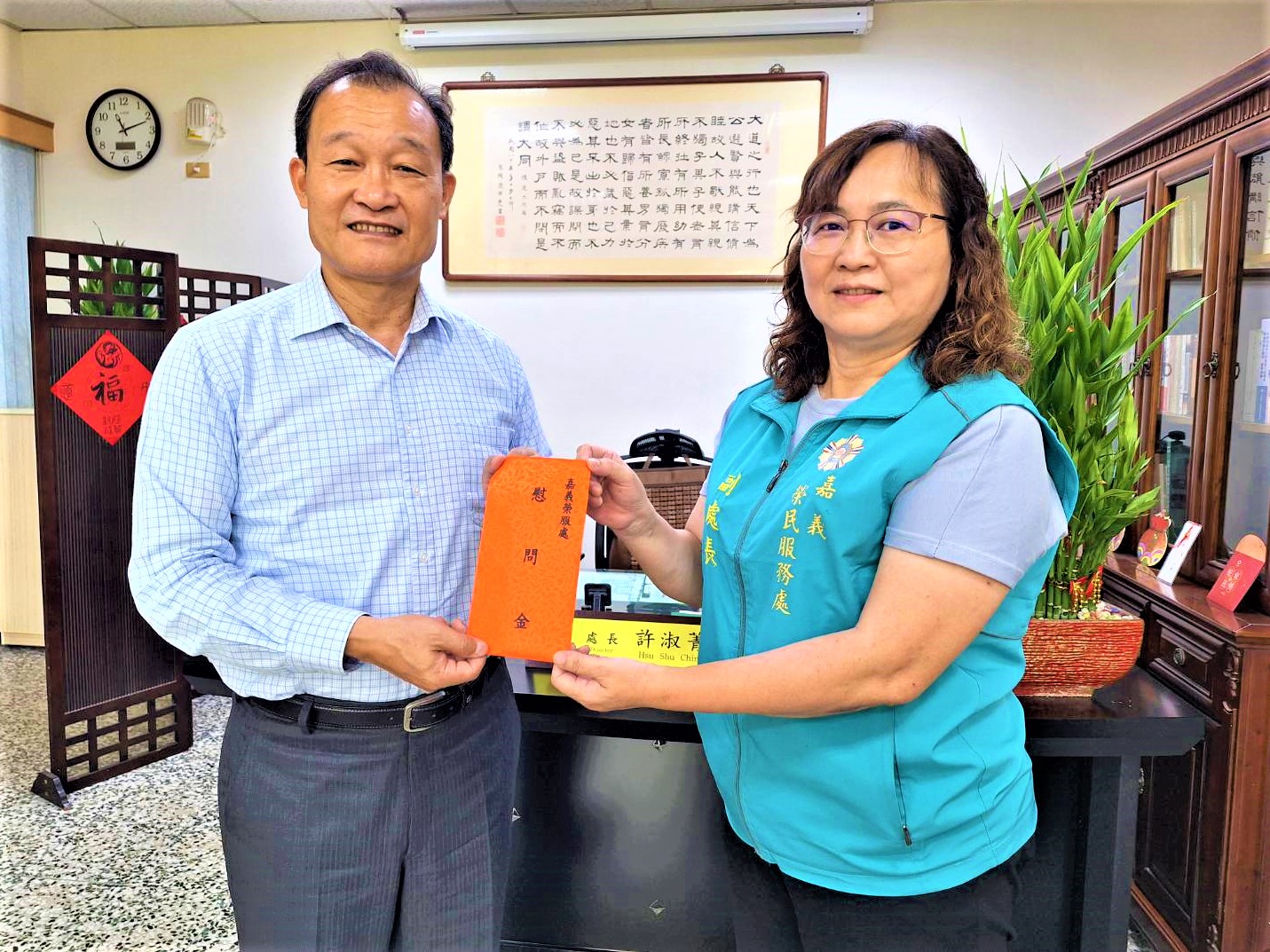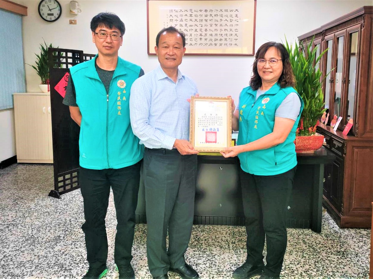 〔記者吳玉芬/嘉義市報導〕欣桃天然氣股份有限公司董事長房茂宏得知嘉義沿海地區因丹娜斯颱風遭受重創,為協助嘉義地區退除役官兵眷重建家園及慰勉救災志工,日前特地專程南下至嘉義榮服處捐贈善款,由副處長曾秀琴代表受贈,並回贈感謝狀,感謝欣桃公司善行義舉,溫暖嘉義地區受災之退除役官兵眷。