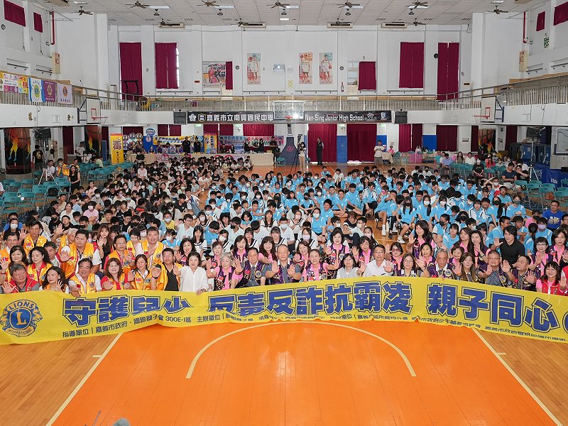〔記者呂昭德/嘉義市報導〕國際獅子會 300E-1 區嘉鳳獅子會於7/23日,在嘉義市南興國中道生館,舉辦「守護兒少 反毒反詐抗霸凌 親子同心 GO」宣導活動,由於暑假期間青少年待在校園的時間減少、校外活動機會增加,為讓學生認識毒品、詐騙及霸凌議題的重要性,本次活動與以往不同,將聽醫師結合音樂人入校推廣生命教育,透過音符傳遞關懷與希望。