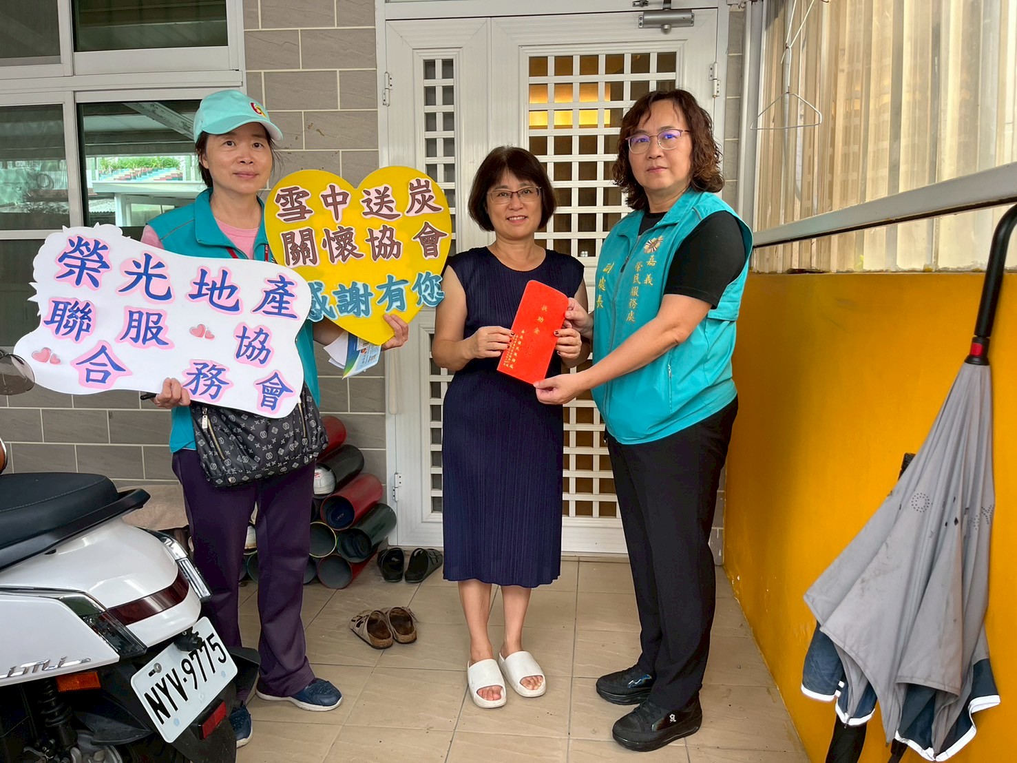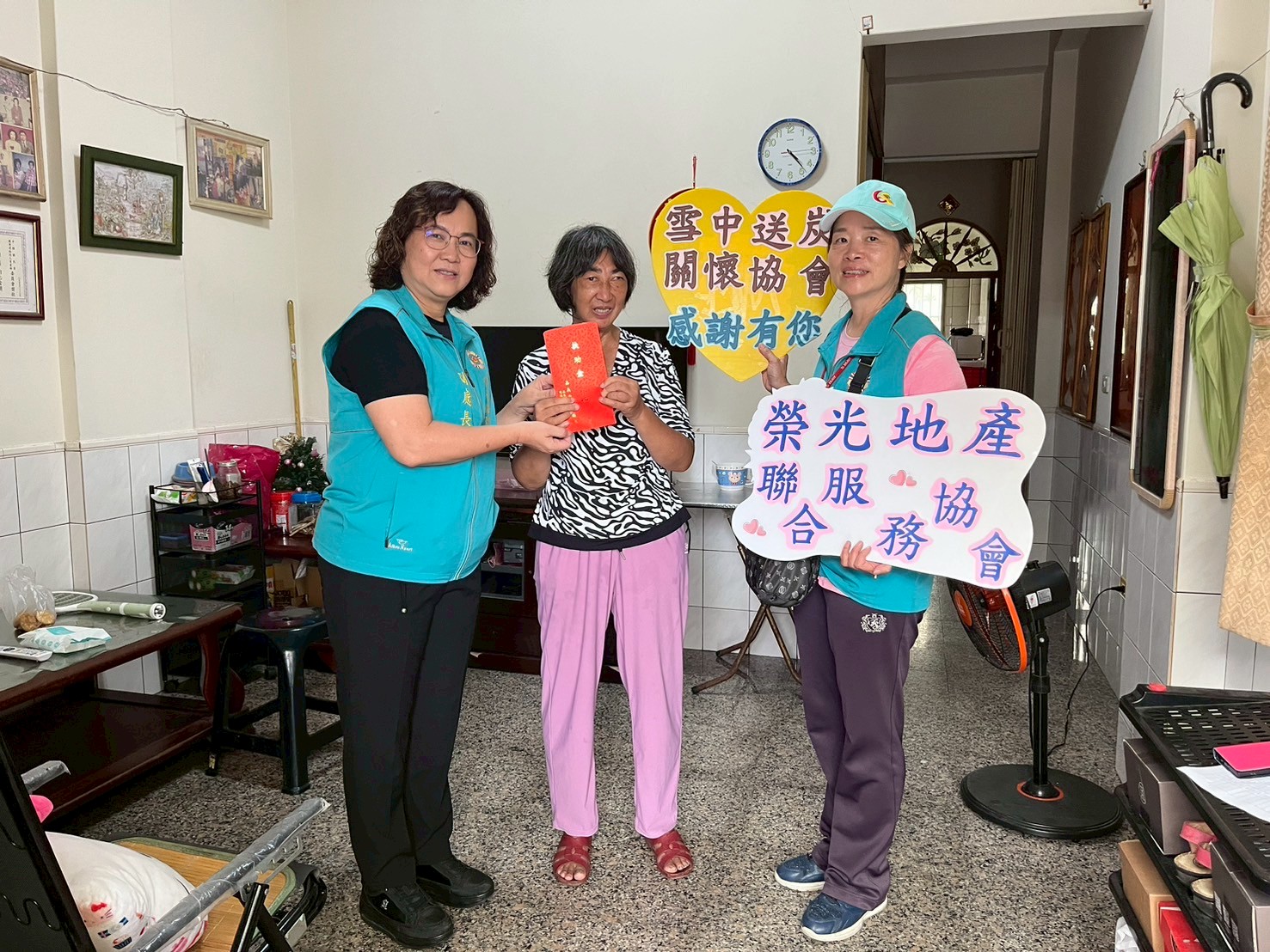 李姓女遺眷長輩表示,以前雖然下雨會淹水,但都只到外面馬路上,沒有淹進來過,沒想到這次大雨竟然淹到家裡來,很感謝榮服處來慰問探視,幫忙後續協處;另一位黃姓女遺眷長輩也表示,竹村里這次因為大雨導致荷包嶼大排溢堤造成淹大水,家裡損失慘重,現在家裡大致已經清理完畢,對嘉義榮服處的慰問關懷及協助向縣府申請補助表示感謝。