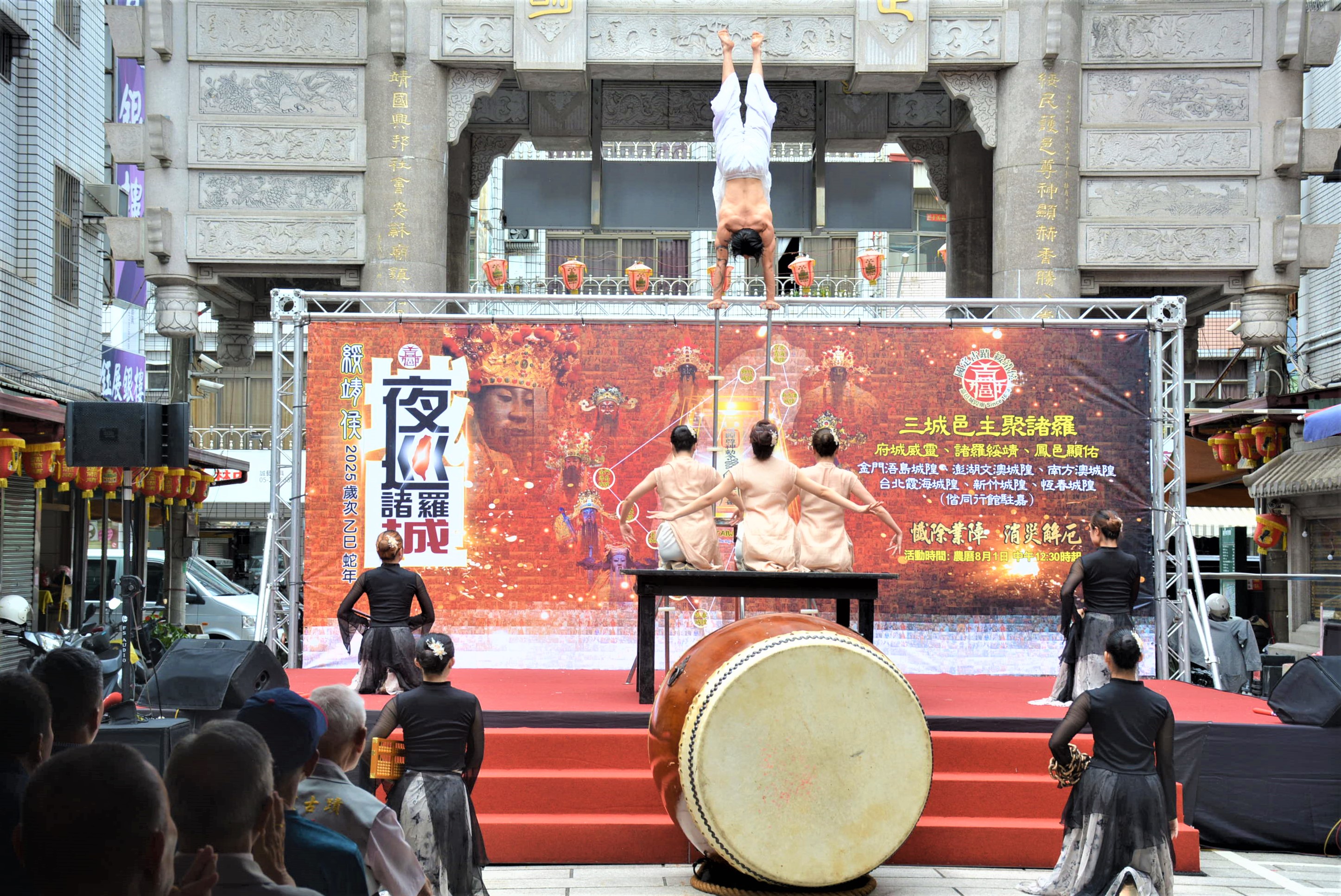 〔記者侯姵伃、郭政隆/嘉義市報導〕城隍夜巡諸羅城是嘉義市重要的文化慶典,更是名揚國際的宗教盛事,也是全國矚目的宗教觀光節慶,嘉義城隍廟於8/27日以傳統技藝展現,結合軟骨功、高空特技及鼓藝的創意表演為「城隍夜巡」記者會揭開序幕,而今年夜巡將邀請臺灣府城隍廟、鳳邑舊城城隍廟蒞臨贊境,並有金門浯島城隍、澎湖文澳城隍、南方澳城隍、台北霞海城隍、新竹城隍、恆春城隍來嘉駐駕,全台城隍九聖齊聚諸羅城,更結合嘉義在地特色的吉祥社大二爺、吉勝堂什家將,夜巡陣容非常精采。