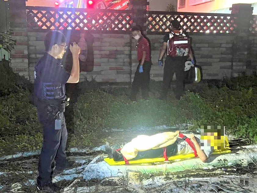 警方到達現場後,找不到任何可以進入的方式,看著老翁倒在該處情況不明,情急之下,決定直接翻牆過去查看,上前確認後,發現黃姓老翁意識清楚,經警方詢問黃翁如何到該處時,黃翁卻彷彿忘了該段記憶,完全不知道,也不清楚何時倒在草地上,亦不清楚這是哪裡,警方見狀,隨即通知醫護人員到現場協助將黃翁送往醫院治療。