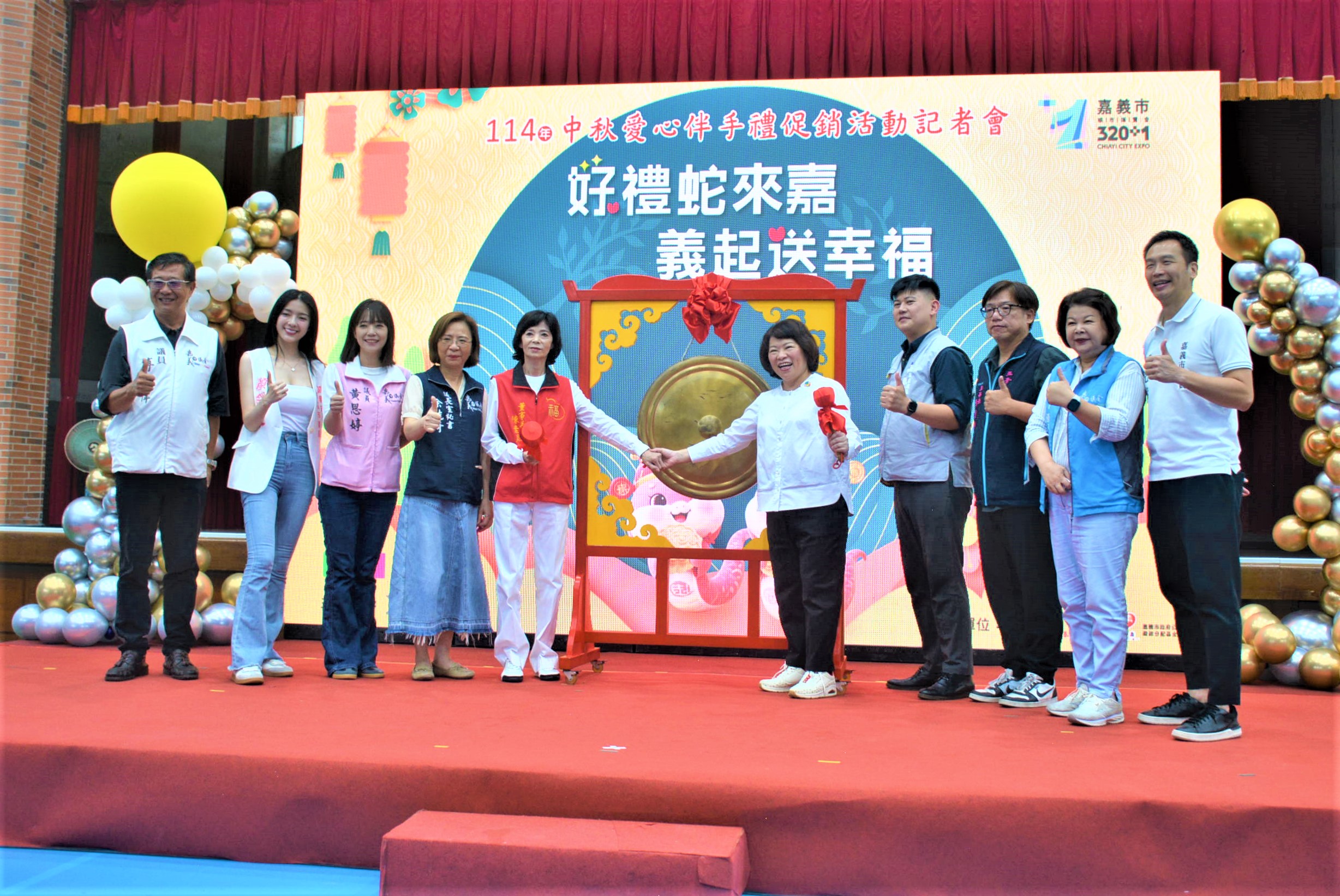 〔記者邱嘉琪、侯姵伃、郭政隆/嘉義市報導〕月圓人團圓,一年一度的中秋佳節又將來臨,嘉義市政府9/10日以「全齡共享 世代宜居」為願景,集結嘉義市社福單位於東區體育舘舉辦「中秋愛心伴手禮促銷活動記者會」,並以走秀及現場設攤方式展示愛心伴手禮盒,嘉義市長黃敏惠更親自力挺宣傳,期待各界在今年中秋選購禮盒時,多多訂購中秋愛心伴手禮,將美味的商品及滿滿的愛心傳遞給更多人。