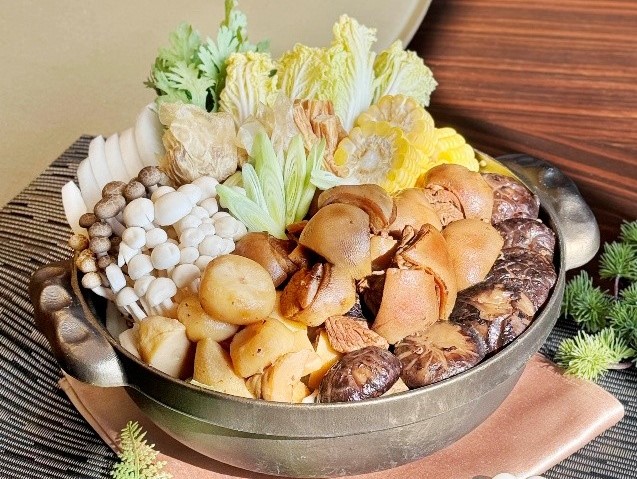 入秋進補,必不可少的便是一鍋好湯,滋補養顏的「花膠刈菜土雞鍋」,以膠質豐富的花膠搭配在地土雞,滋補暖胃,濃郁誘人的「港式枝竹羊腩煲」,以大火爆炒羊肉激發出鍋香氣,再特別加入「甘蔗」熬煮,清甜的甘蔗巧妙中和油膩感,讓整體湯頭喝起來更加清爽,搭配蘿蔔及白菜等涼性蔬菜一同食用,能平衡羊肉溫熱特性,讓溫補的效果更佳。