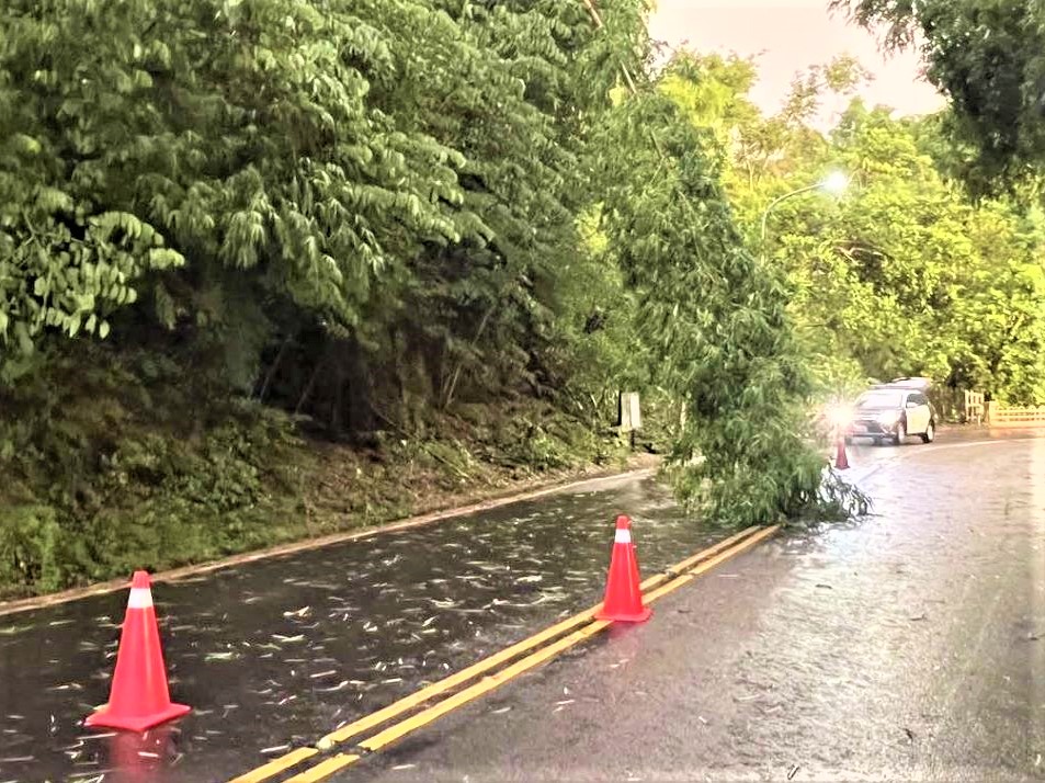 〔記者呂昭德/嘉義市報導〕嘉義市政府警察局第二分局長竹派出所警員詹茗翔日前擔服備勤勤務時,接獲勤務指揮中心通報,有民眾於行經環潭公路時,發現有路樹倒塌在道路上,影響車輛通行,警方獲報後遂立即趕赴現場處置,並於第一時間擺放交通錐警戒實施交通管制,同時通報嘉義市政府環保局前來清除。。