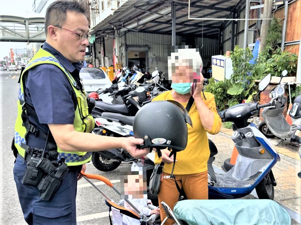 警方獲報後迅速趕赴現場,先安撫陳老婦人焦急不安的情緒,並詳細詢問安全帽的顏色、款式及放置位置,警方研判現場為商圈停車熱區,機車密集停放且外觀相似,極有可能是遭人誤拿或移動,遂展開周邊搜尋;警方沿著停車格一輛輛檢視,最終在陳老婦人重機車旁一輛停放的重機車龍頭上,發現1頂與其描述完全相符的安全帽。