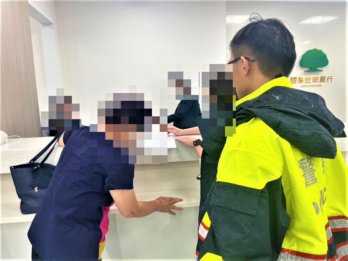 〔記者李芸蓁/嘉義市報導〕嘉義市政府警察局第一分局長榮派出所警員李韋葶、鍾承恩日前擔服巡邏勤務時,接獲垂楊路國泰世華銀行-嘉義分行報案稱,有一名婦人欲臨櫃以無摺存款匯款新臺幣10萬元,經關懷詢問察覺有異,疑似遭到詐騙,請警方到場關心查訪;李、鍾等2員接獲通報後,立即趕赴現場查看。