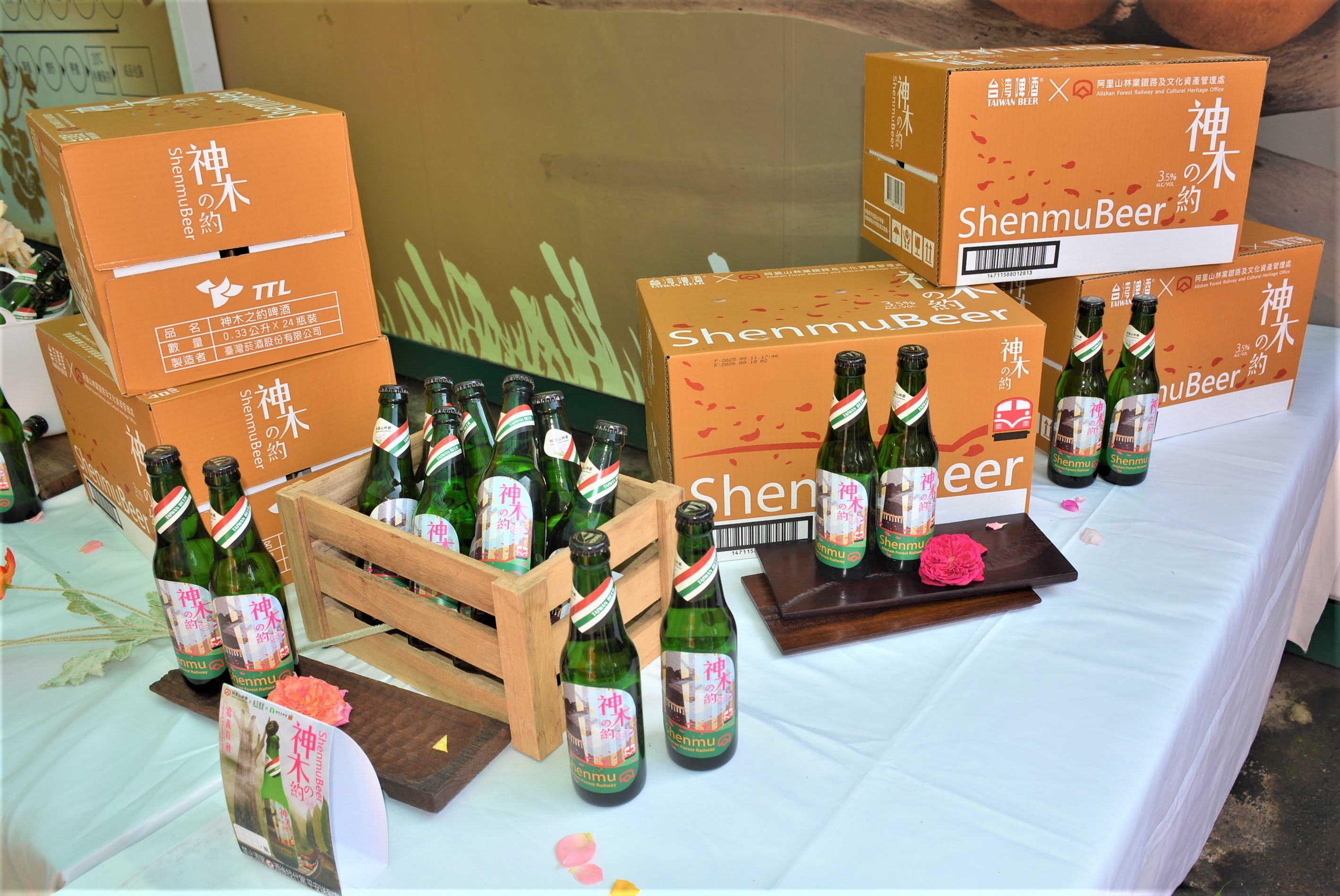 〔記者李寧/嘉義市報導〕林業及自然保育署阿里山林業鐵路及文化資產管理處與臺灣菸酒股份有限公司-台灣啤酒連續4年跨界合作,推出以阿里山林鐵車站為名之系列啤酒,並於9/30日公開第4款酒名為「神木之約」,嚴選阿里山茶區栽種蜜香紅茶及阿里山腳「曙光玫瑰莊園」玫瑰純露釀酒,酒香前調玫瑰味芳香清甜猶如徜徉在玫瑰花海裡,尾韻帶有蜜茶香氣彷若置身高山茶園,3.5%低酒精濃度,口感柔順香醇不苦澀、順口好入喉,啤酒麥香與紅茶、玫瑰香味相互平衡,整體風味豐富有層次,適合好友同聚共享微醺時光。