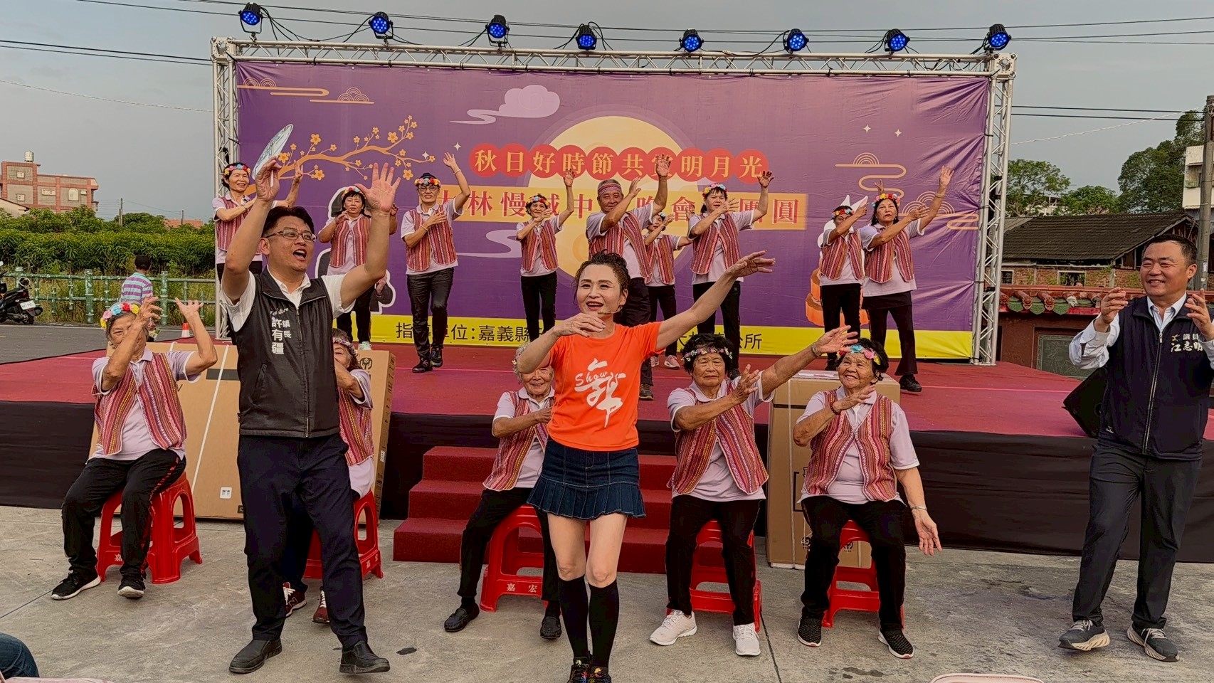 〔記者陳允得/嘉義縣報導〕中秋佳節即將到來,大林鎮長許有疆與公所團隊精心籌劃的中秋聯歡晚會,10/4日晚上在大林溝背金林寺廣場快樂開趴,吸引2千名以上鄉親扶老攜幼熱烈參與,大家一起欣賞精采表演、拿小禮物、還有鄉親最期待的摸彩拿大獎,氣氛熱鬧,歡樂歌聲響徹月夜星空。
