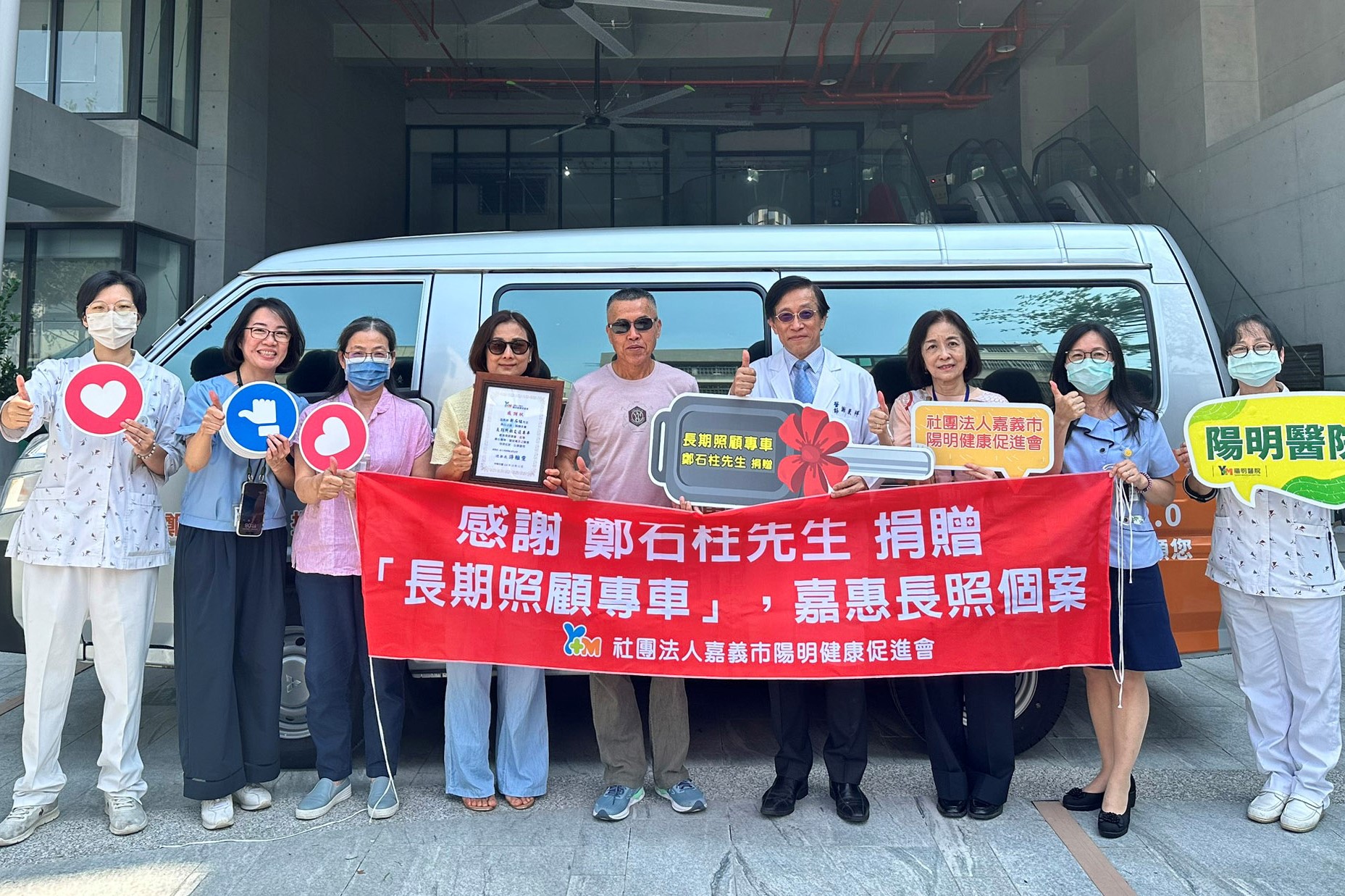 〔記者李芸蓁、郭政隆/嘉義市報導〕嘉義縣一位善心的鄭清木先生,因有感六腳鄉永賢村與竹本村兩地長輩眾多,對長照接送服務有實際需求,想以100多萬元購置一部「長期照顧專車」以嘉惠地方長輩,但又不知該捐贈於何單位,經其親友推薦及口碑所聞,而予決定贈予嘉義市陽明醫院,並於10/13日上午將該「長期照顧專車」贈交陽明醫院,以協助該院推動長照接送服務,儀式現場有眾多看診患者與院內同仁共同見證這份善意,氣氛溫馨而感人。