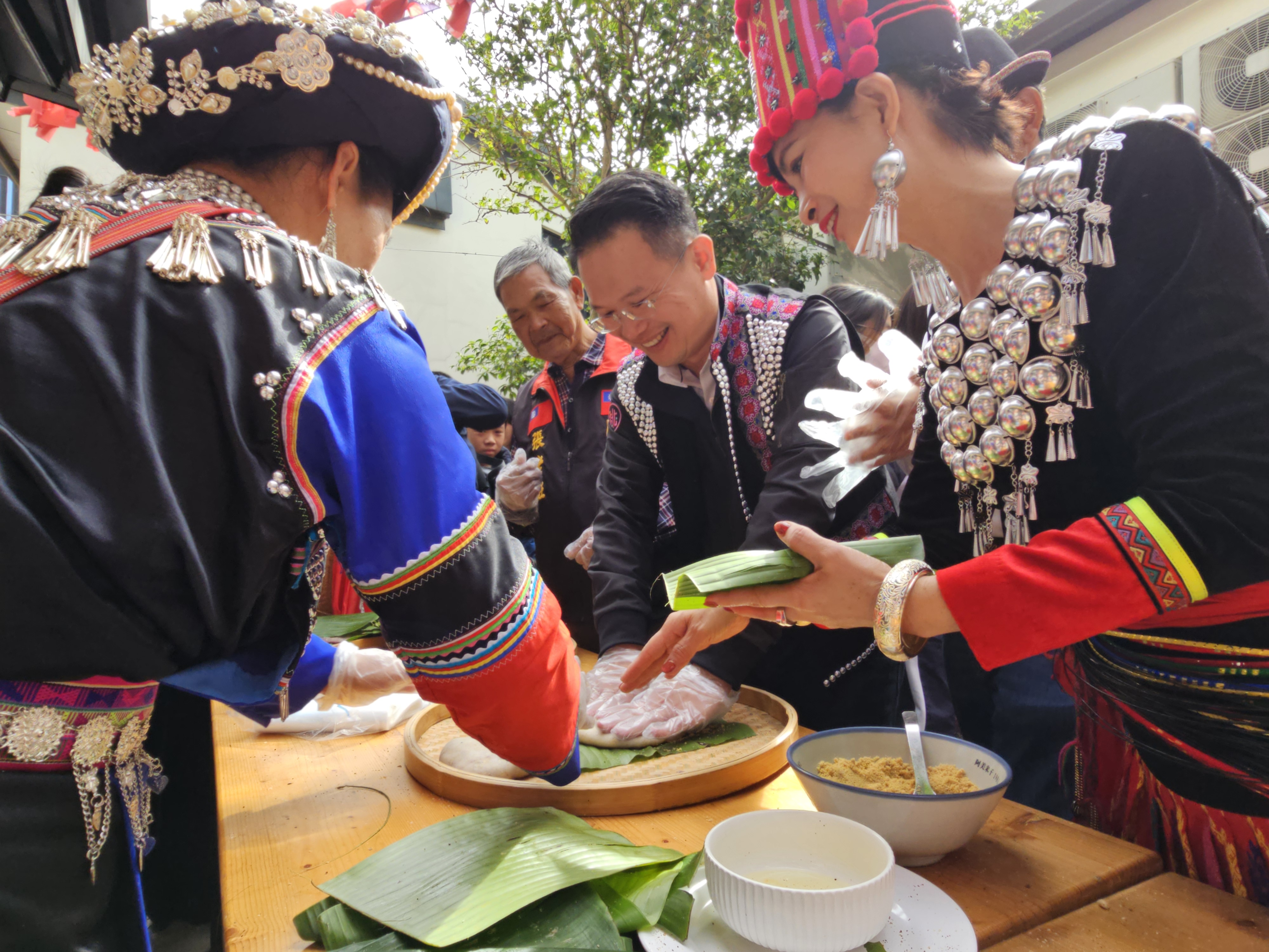 桃園市副市長蘇俊賓今(18)日上午至平鎮區忠貞文化園區,出席「2025年闊時節活動」,闊時節是雲南少數民族傈僳族年末最重要的節日,有如新年,在這一天他們拜謝、許願,敲響銅鼓祈願。蘇副市長也親身體驗了傈僳族傳統的椿粑粑與擊銅鼓儀式,並表示,這項活動不僅是族人迎接新年的習俗,更象徵著滇緬文化的傳承,讓大家更團結。