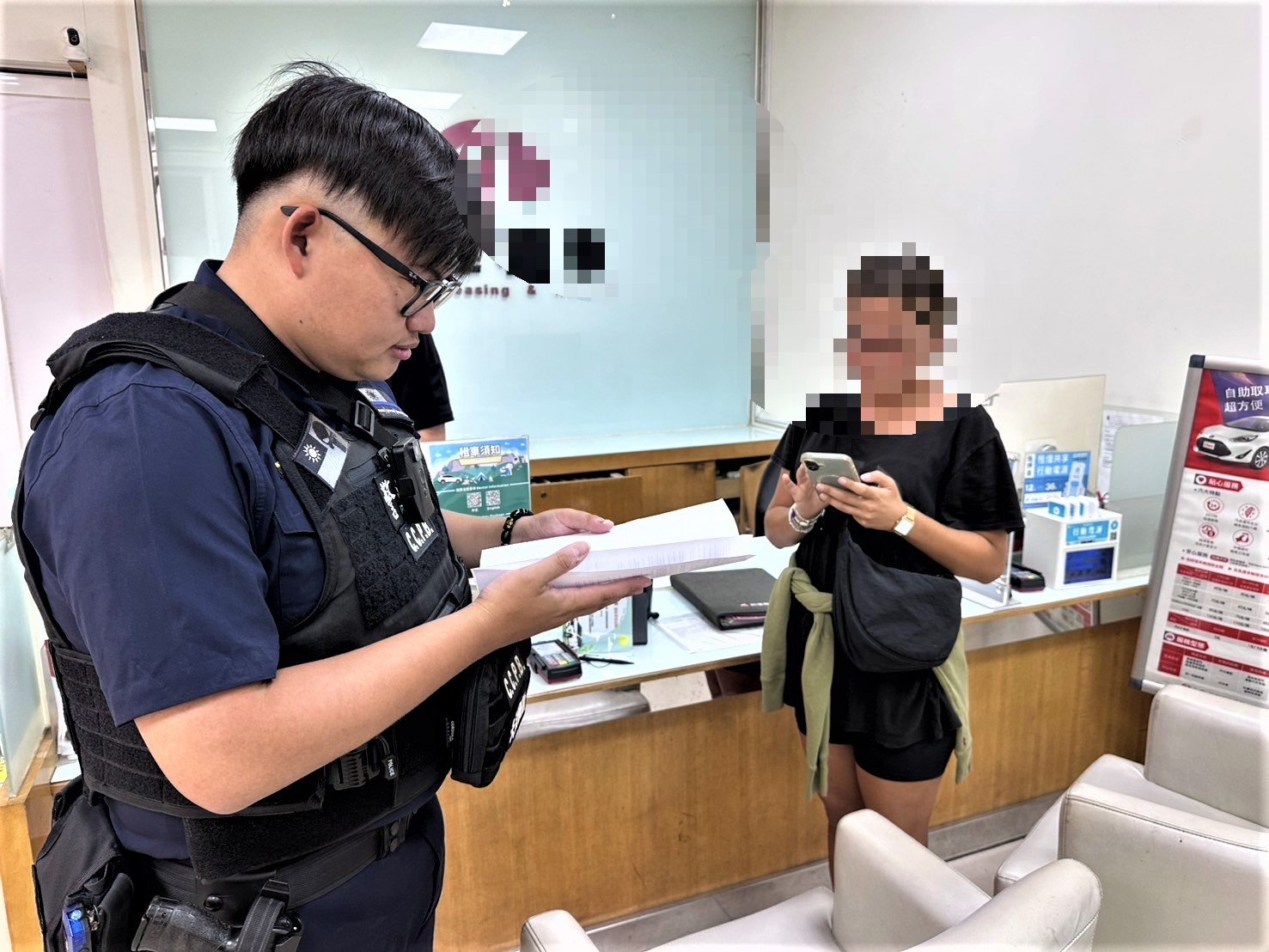 〔記者吳玉芬/嘉義市報導〕嘉義市政府警察局第一分局北興派出所警員陳重安、陳昱廷於日前擔服巡邏勤務時接獲報案,在博愛路段租車公司,有外籍旅客因租車合約,言語溝通不良發生租賃糾紛,請警方到場協助;員警獲報前往,發現一位外籍女士滿臉疑惑及無奈表情。