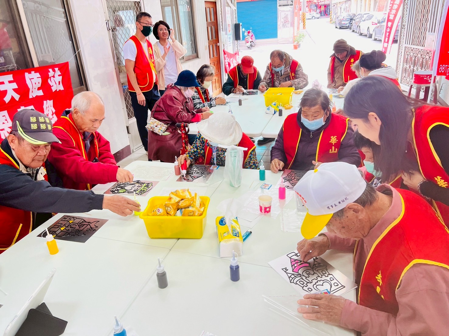 華山基金會六腳天使站的80歲的侯姓阿嬤,自106年開始接受華山服務,已8個年頭,適逢感恩節前夕,站長帶領近期剛喪偶、心情鬱悶的侯阿嬤及服務的長輩們,走出家中,一起在六腳天使站挑戰烤畫製作,透過DIY讓長輩不僅訓練手部運動、紓解壓力,同時延緩退化,並增強色彩敏銳度,從中獲得成就感,製作出獨一無二的作品,讓長輩帶回家妝點鏡面或磁磚牆壁。