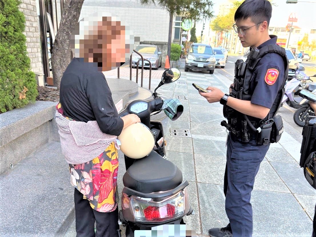 〔記者呂昭德/嘉義市報導〕嘉義市政府警察局第一分局八掌派出所警員鍾為元、賴正穎於日前擔服巡邏勤務時,接獲熱心民眾報案稱,在新民路段附近有一名年約七十多歲的老婦人騎著機車,神情徬徨獨自停在騎樓邊不知所措,請警方到場關懷;員警趕抵達現場,關心詢問得知為74歲尉姓老婦,而她僅能說出自己的姓名,但對於住家位置、騎機車外出欲前往何處等,完全失憶不記得。