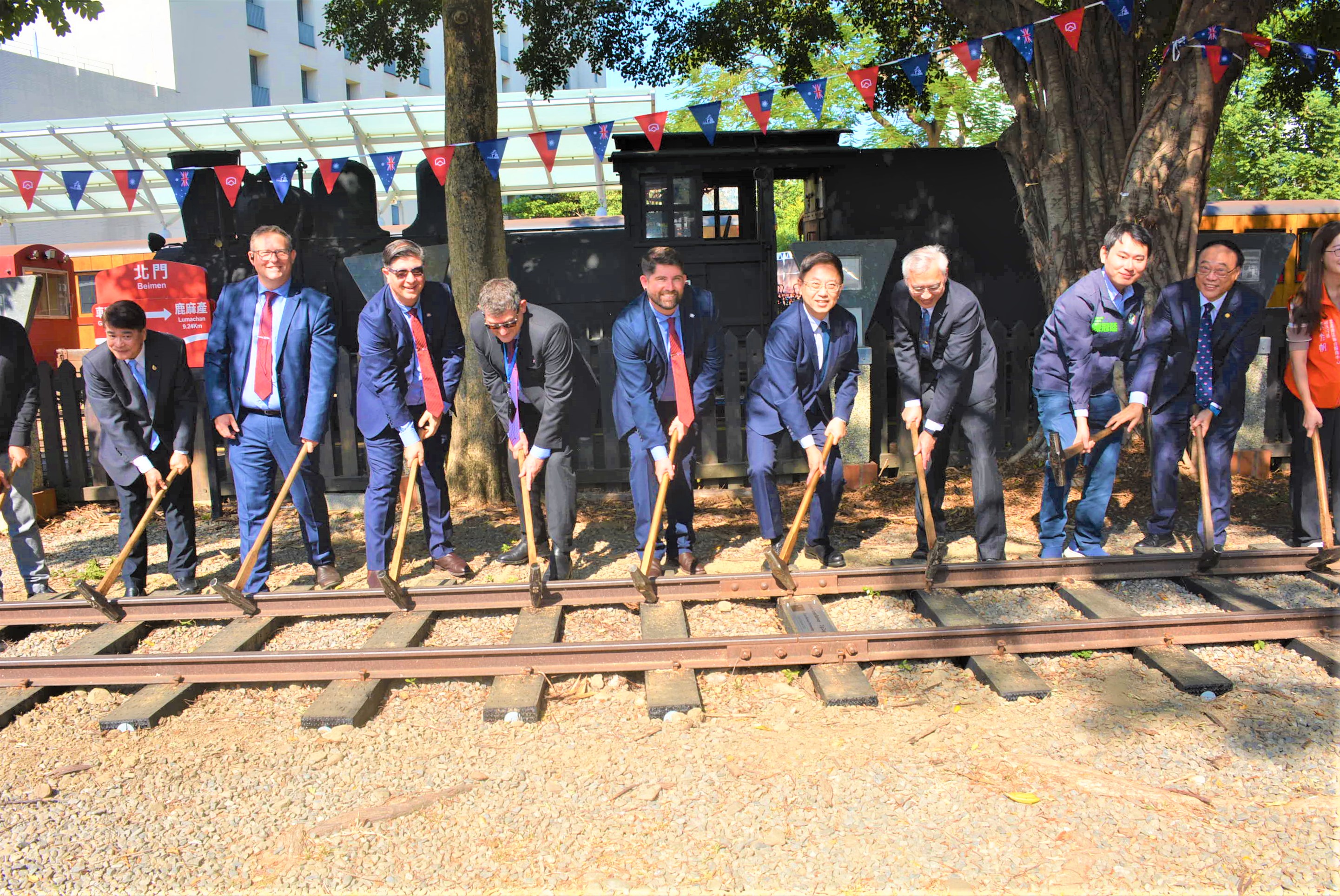 阿里山林業鐵路及文化資產管理處王昭堡處長,熱情歡迎跨洋來臺之字形鐵路與阿里山林鐵締結姊妹鐵路,提及今年10月派出兩位同仁前往澳洲交流,之字形鐵路團隊不僅熱情接待,更毫無保留地分享駕駛與維修經驗,是趟收穫豐富、受益匪淺的學習之旅,也為雙方未來的合作奠定了更堅實的基礎,期盼象徵友誼的列車能從北門驛車站啟動,讓兩鐵路未來合作走的更遠。