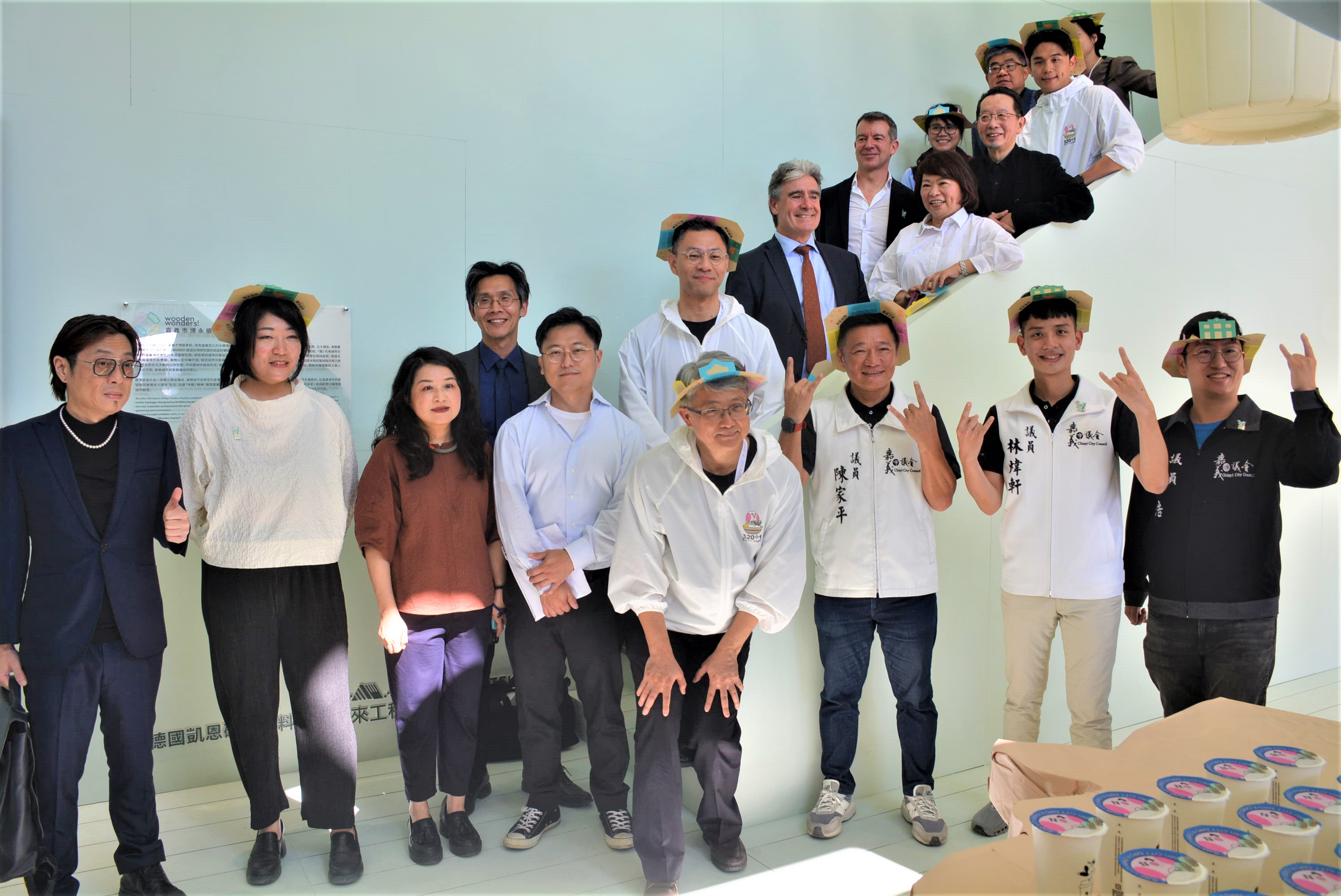 〔記者郭政隆/嘉義市報導〕「320+1嘉義市城市博覽會」,12/12日於市府北棟大樓預定地舉行「Wooden Wonders 嘉義市博願景館」開幕茶會,邀請建築事務所 MVRDV 跨海來「嘉」參與,打造期間限定木構展館,回應嘉義「木都」城市精神;開幕茶會現場亦邀請荷蘭在台辦事處代表 Bas Pulles(浦樂施)出席,嘉義市長黃敏惠也親自與各界貴賓一同參觀展覽,共同見證嘉義市透過城市博覽會,深化國際交流、展現城市文化實力。