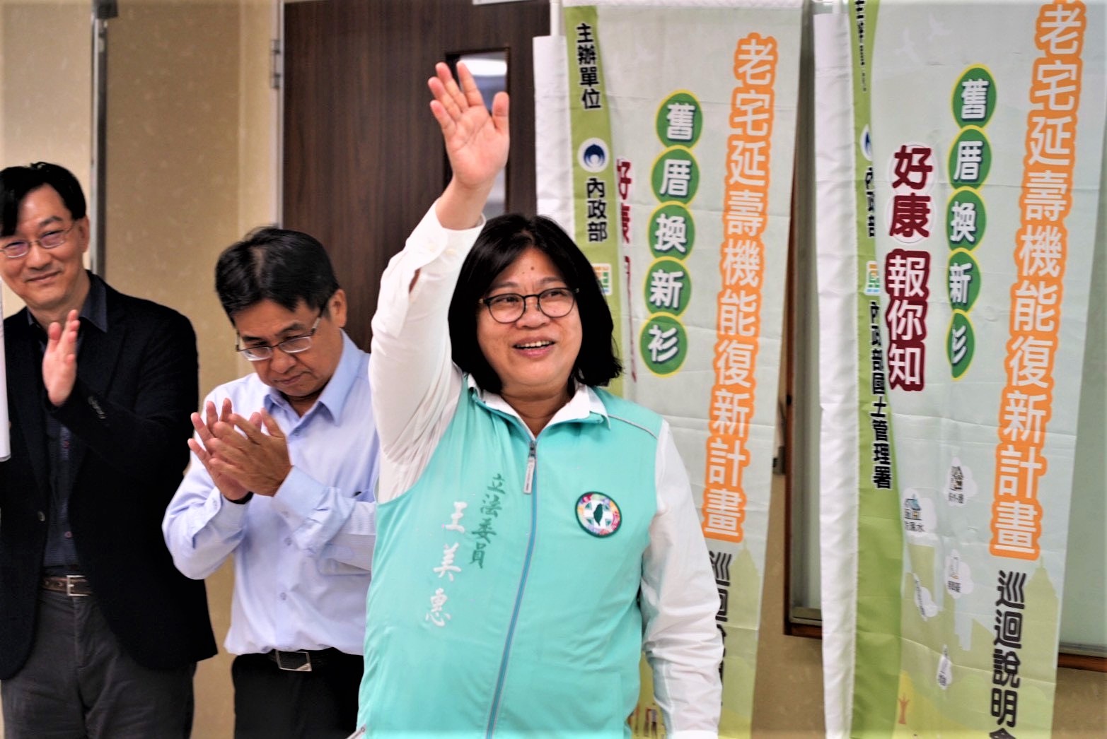 立法委員王美惠表示,嘉義市平均屋齡高達36.21年,30年以上老屋達8萬6587戶,占全市住宅比例77.67%,嘉義市老屋比例高,面對高齡社會與老舊建物比例極高的現況,許多民眾長期關心居住安全與房屋修繕問題,因此特別向內政部爭取,優先在嘉義市辦理說明會,讓市民能第一時間掌握政策內容與申請方式。