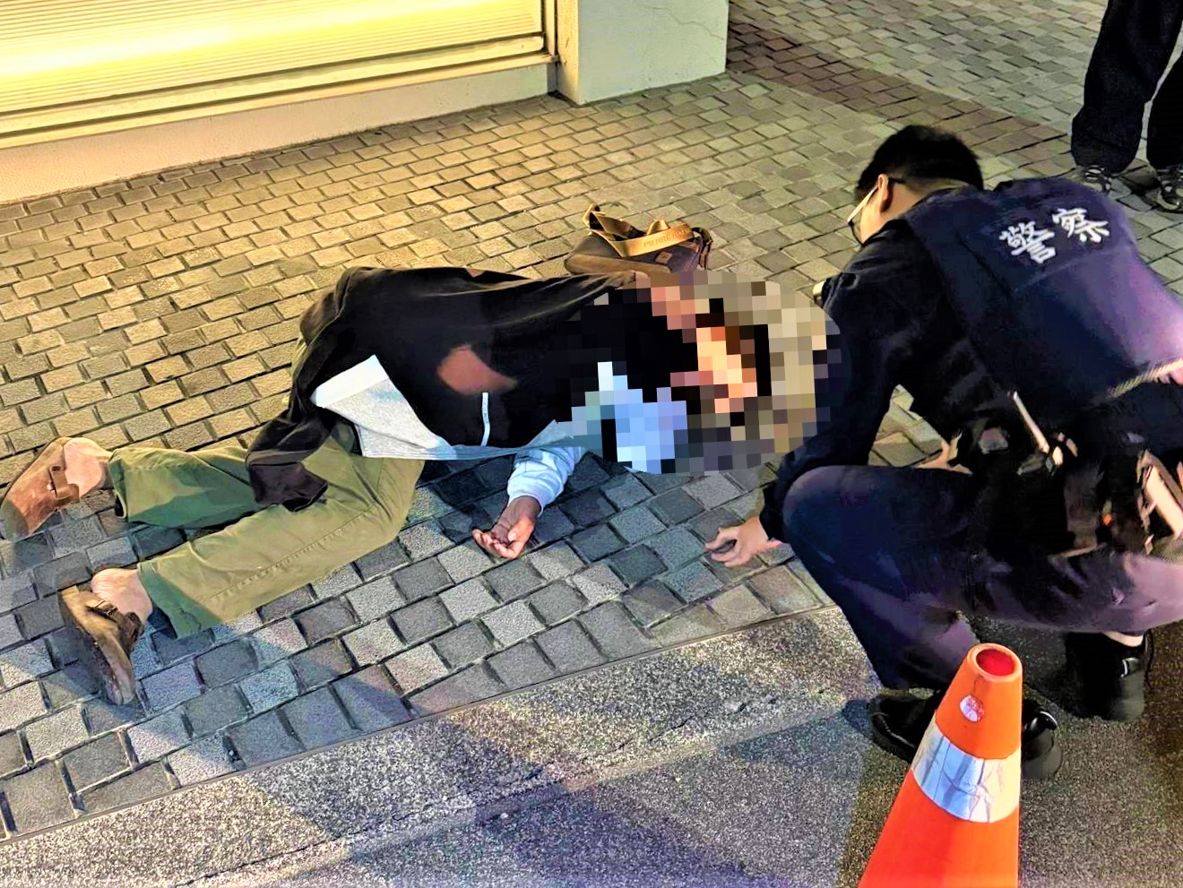 經關懷詢問得知,該男子為38歲張姓男子,經檢視張男身體狀況雖然無明顯外傷,但精神狀態不佳,關懷詢問有無需要就醫,張男表示不用,因醉態明顯步伐不穩無法正常自行返家,若繼續倒臥於路旁恐遭車輛擦撞或再度跌倒,深怕引發用路人安全之虞,員警立即攙扶張男至安全處休息,並持續詢問關懷。