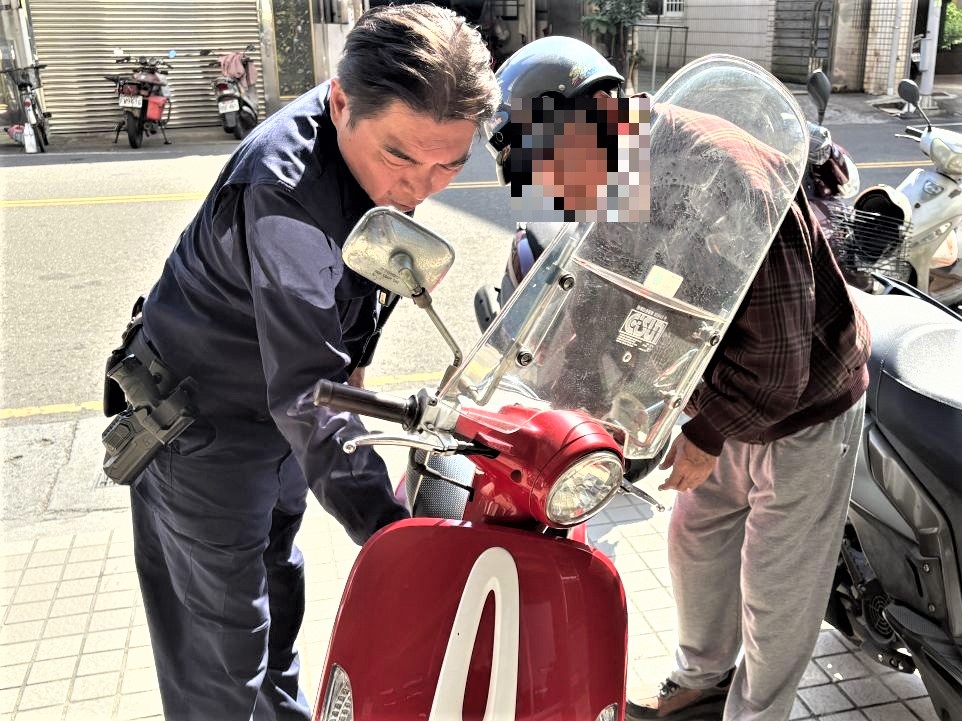 在警方確認該重機車確實為老翁所有後,警方開始研究老翁手上的鑰匙跟重機車的鑰匙孔,發現老翁應係鑰匙沒有與鑰匙孔的位置對好,導致沒辦法正確轉動鑰匙孔,因此協助其將鑰匙正確插入重機車鑰匙孔後,便能正常啟動,老翁見到重機車正常啟動後,激動不已,表示自己眼睛跟手可能不夠靈活加上當時太緊張所以一時無法啟動該重機車,老翁離開時,頻頻向警方表達感謝之意。