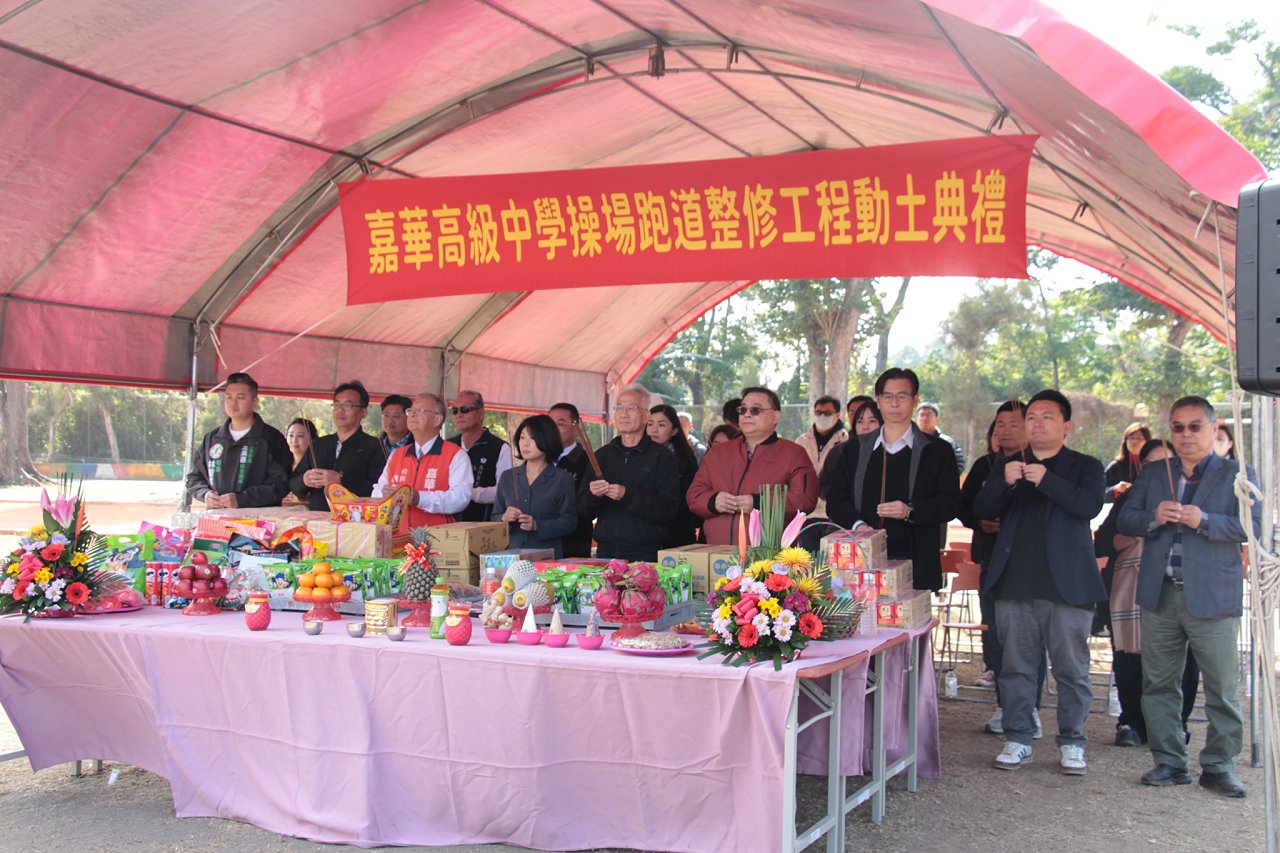 全密式 PU 跑道工程預定於今年 5 月完工啟用,嘉華中學特別感謝國教署的經費支持,以及王美惠立委、黃敏修議員的奔走爭取,更對學校董事會、家長會及校友會展現的向心力表示敬佩;校方表示,未來新跑道完工後,除提供學生更優質的運動環境,也將與社區共享這份活力,讓嘉華中學持續作為嘉義市教育與運動的重要亮點,傳承「三好校園」的健康精神。