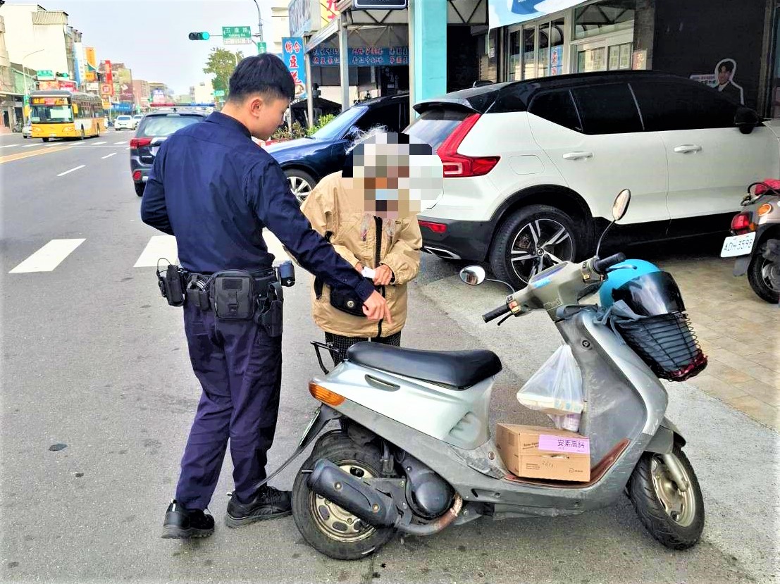 經了解為88歲蕭姓婦人,她神情焦急地向員警表示,一時想不起機車停放位置,擔心可能遭人騎走,員警先安撫蕭婦不安情緒,並詳細詢問其最後騎乘路線、可能停車地點及機車外觀特徵,研判為記憶混淆導致忘記停放位置的可能性較高。