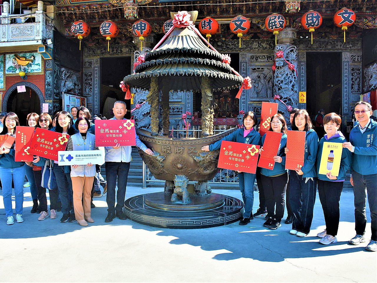 〔記者侯姵伃、郭政隆/嘉義市報導〕歲末年初,迎春納福耀金馬,嘉義市政府財政稅務局、台灣銀行嘉義分行1/14日於嘉義文財殿舉行祈福儀式,並限量推出「金馬耀富貴」紅包袋、幸福米,及臺灣銀行嘉義分行發財水來迎接2026丙午馬年,祝福嘉義市喜氣盈門,期盼透過三方福氣加持,各行各業皆能如金馬奔騰般蓬勃發展、富貴臨門。