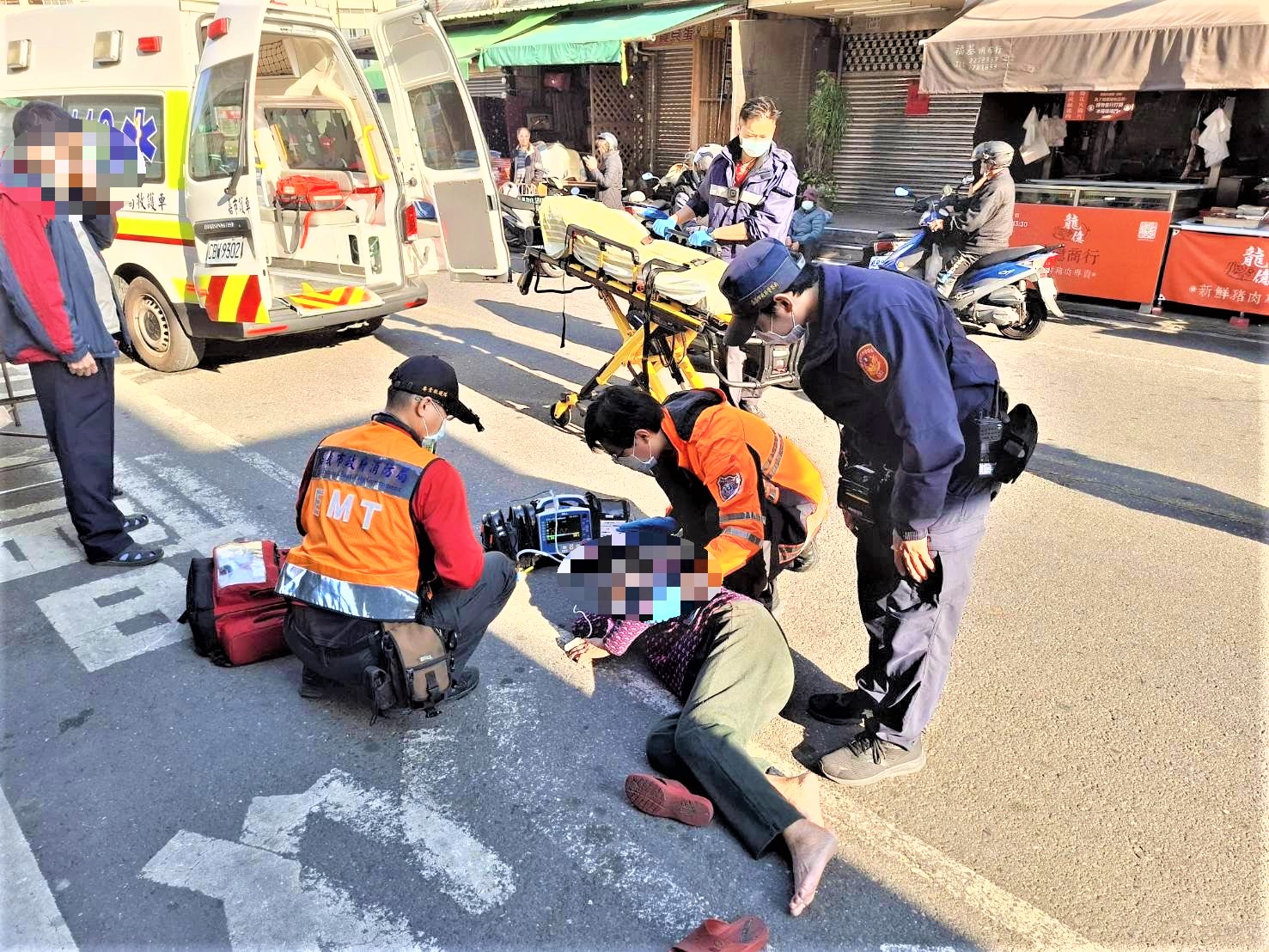 〔記者李芸蓁/嘉義市報導〕嘉義市政府警察局第一分局北興派出所警員林信榮日前擔服備勤勤務時接獲報案稱,在本市北興街與友愛路口處附近,有一名老婦人疑似身體不適倒臥路旁,請警方到場關懷協助;員警到場了解後發現為79歲李姓老婦,其當日獨自步行到附近市場購物,因天氣寒冷造成身體血糖過低,感到頭暈目眩,而倒臥路旁,員警緊急通知救護人員到場救治。