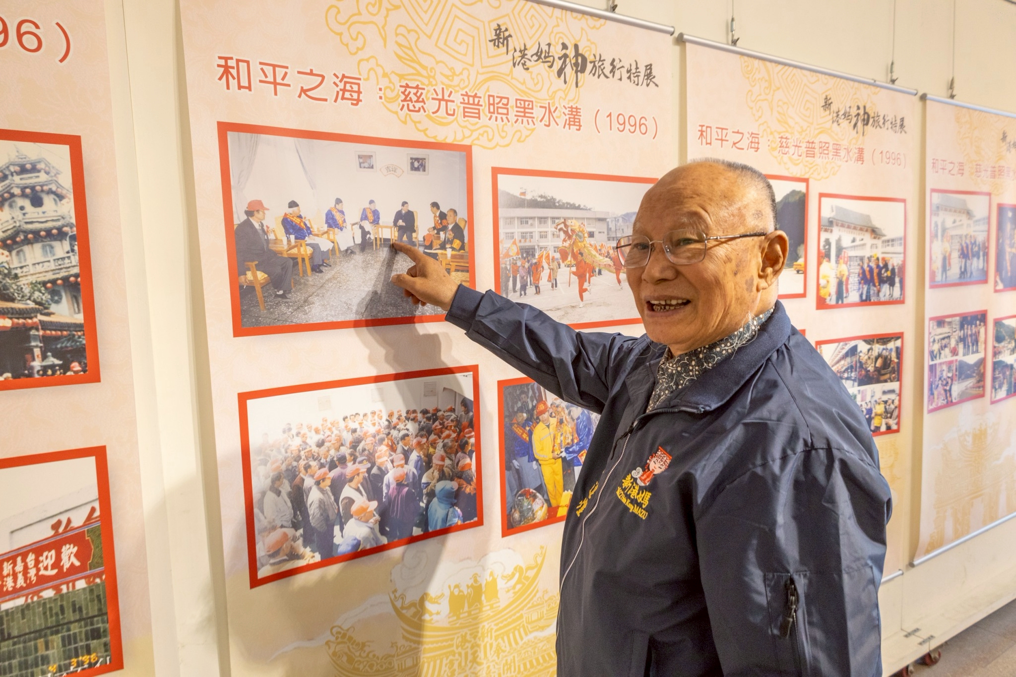 新港奉天宮董事長何達煌表示,本次展覽透過八大展區,回顧近三十年來開臺媽祖如何一步步走出廟埕,走進社會與世界;從1996 年兩岸局勢緊張之際,新港奉天宮信眾請示媽祖出巡,開臺媽祖首度跨越黑水溝,巡行臺、澎、金、馬離島,將香火與平安符送至前線官兵手中,以信仰安定軍民,成為臺灣宗教史跨海遶境的典範。
