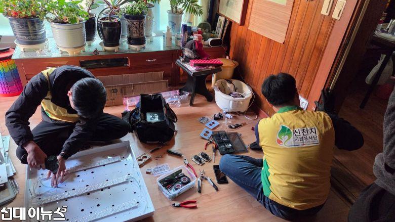 志工們正進行日光燈及電氣安全的檢查。【照片提供:新天地志工服務團光州分部】